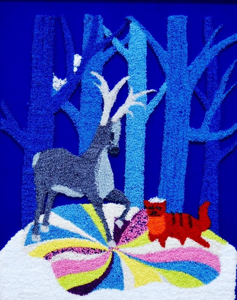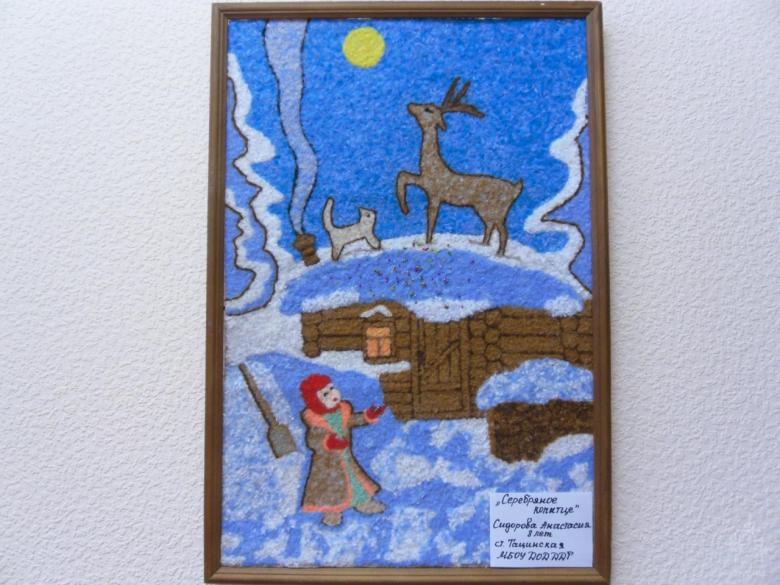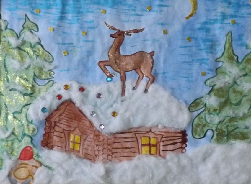 Certains artisans utilisent des grains blancs pour fabriquer de la neige, mais le travail est assez laborieux et peut prendre trop de temps. L'algorithme est simple : vous devez dessiner votre dessin animé favori sur un grand morceau de coton et en reproduire tous les détails.