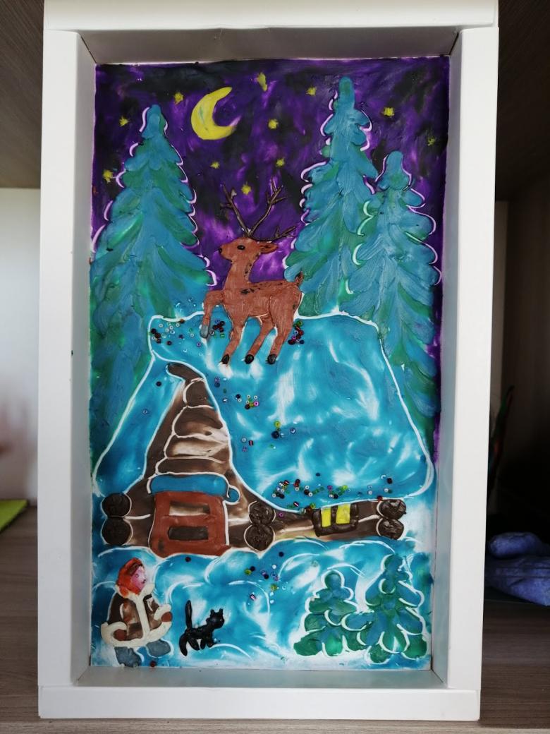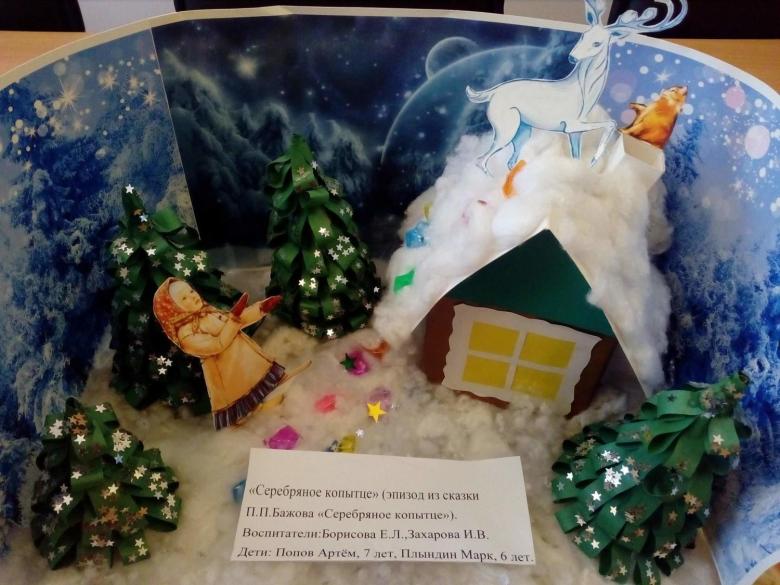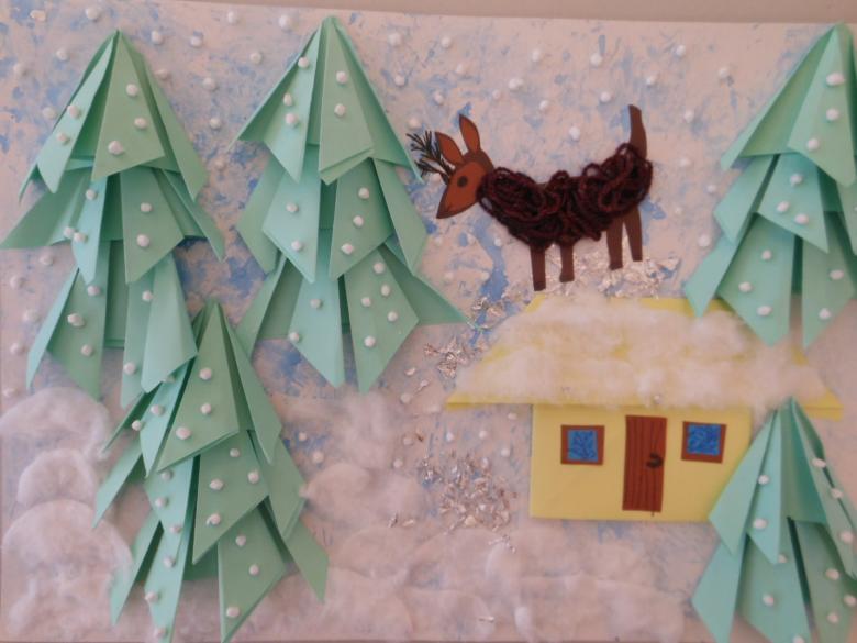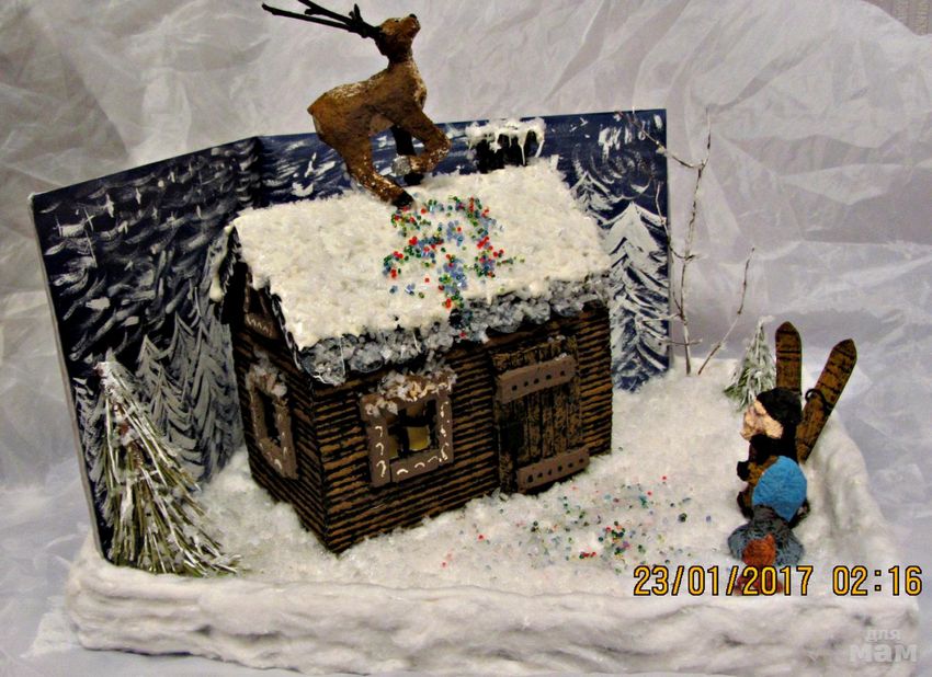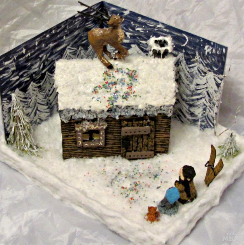 Le papier de couleur sera une excellente base pour découper les animaux et les oiseaux qui agrémenteront l'aspect de la forêt enneigée. Une petite cabane doit être recouverte d'ouate sur le dessus et créer l'effet d'une forte chute de neige. Les flocons de neige ne doivent pas être petits, ils doivent être conformes à l'hiver tempétueux de l'Oural, tel que décrit par Bazhov.