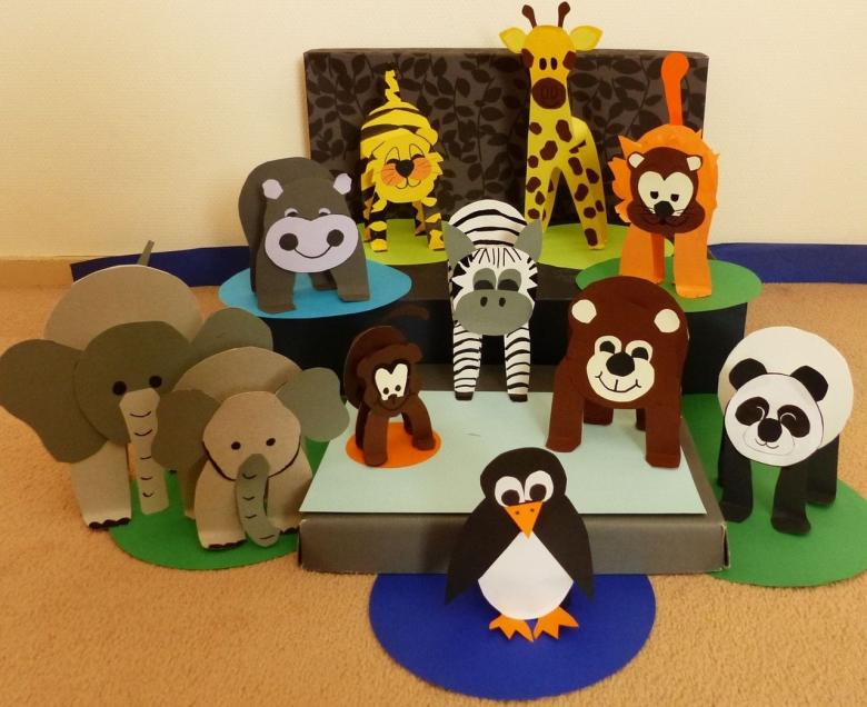 - Des figurines d'animaux en papier et en carton peuvent être utilisées pour organiser un théâtre de marionnettes.