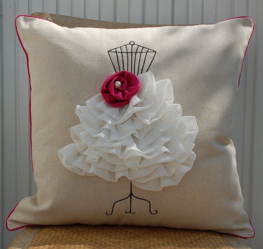 Ils sont décorés de glands, de dentelle, de volants, de clips et de draperies. Cousez des coussins à partir de vieux vêtements (pulls texturés, chemises à carreaux, corsages aux motifs inhabituels). Il est important de ne pas oublier de couper les bords et d'utiliser un œillet pour les matériaux particulièrement difficiles.