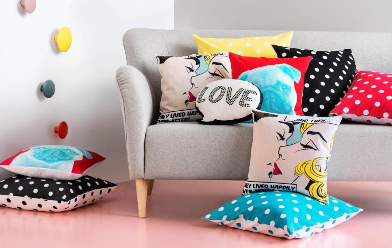 Le pop art éblouissant et audacieux aime les imprimés originaux, les lettrages provocateurs et les couleurs vives. Si vous appliquez tout cela lorsque vous cousez des coussins, vous êtes sûr qu'ils s'adapteront même aux environnements les plus flashy et les plus extravagants.