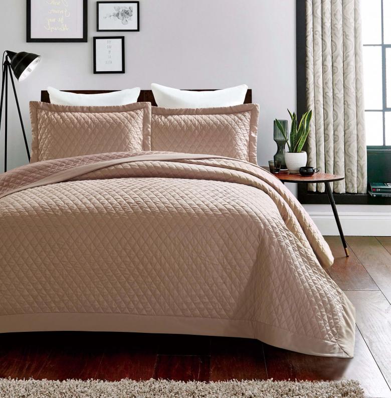 - Technique de création d'un couvre-lit matelassé. Pour ce faire, sélectionnez un tissu de base, une doublure (sintepon) et un matériau de doublure. Les tissus pour les matelassés conviennent aux tissus légers (satin, coton). Le tissu est cousu à la doublure non seulement le long du périmètre mais aussi avec un certain nombre de points horizontaux et verticaux. Le résultat est une cape avec des carrés, des losanges légèrement volumineux.
