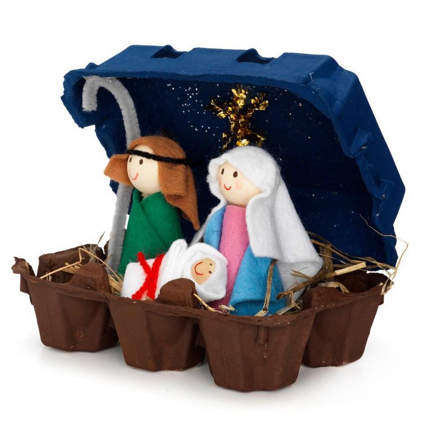 - Faites les personnages principaux. Comme nous l'avons déjà mentionné, toute crèche comprend Jésus, Joseph et la Vierge Marie.