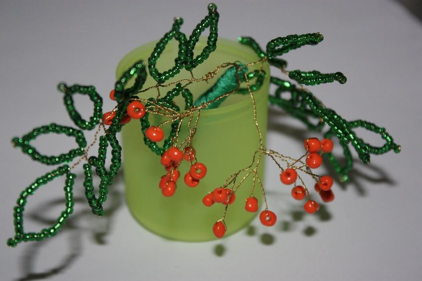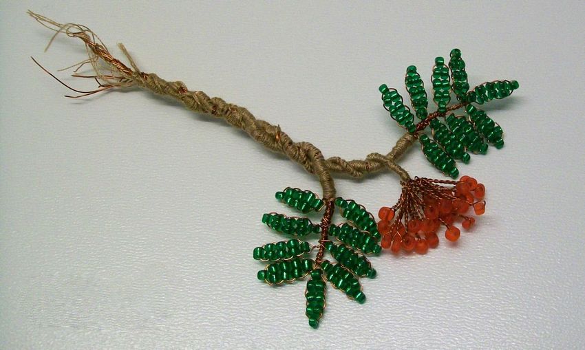 Supposons qu'il s'agisse simplement d'une petite branche de perles de sorbier, mais l'expérience acquise vous permettra de créer des versions plus complexes de la direction. Pour ce maître, il a inventé plusieurs approches simplifiées de l'exécution du tissage, qui peuvent être perçues comme des méthodes d'enseignement.