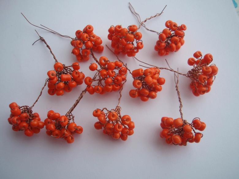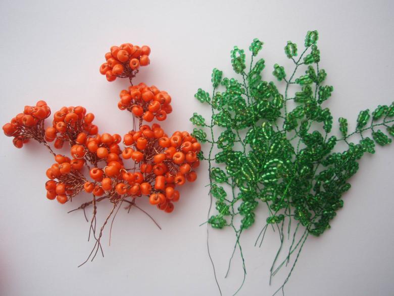 - Les baies peuvent être créées à partir de perles, mais les grandes sont appliquées une par une, les petites peuvent être tissées en plusieurs unités à la fois. Pour créer un sorbier d'hiver de qualité, vous aurez besoin d'au moins 24 grappes ;