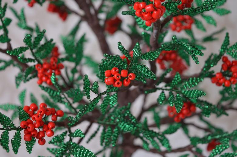 En hiver, tout semble s'arrêter, dans l'attente de nouvelles gorgées d'été et d'un fort ensoleillement. Mais le sorbier offre aux hommes et aux oiseaux rares ses fruits rouges, recouverts de neige et de glace. On ne peut donc s'empêcher de se demander comment tisser un sorbier d'hiver en perles afin d'admirer sa beauté toute l'année.