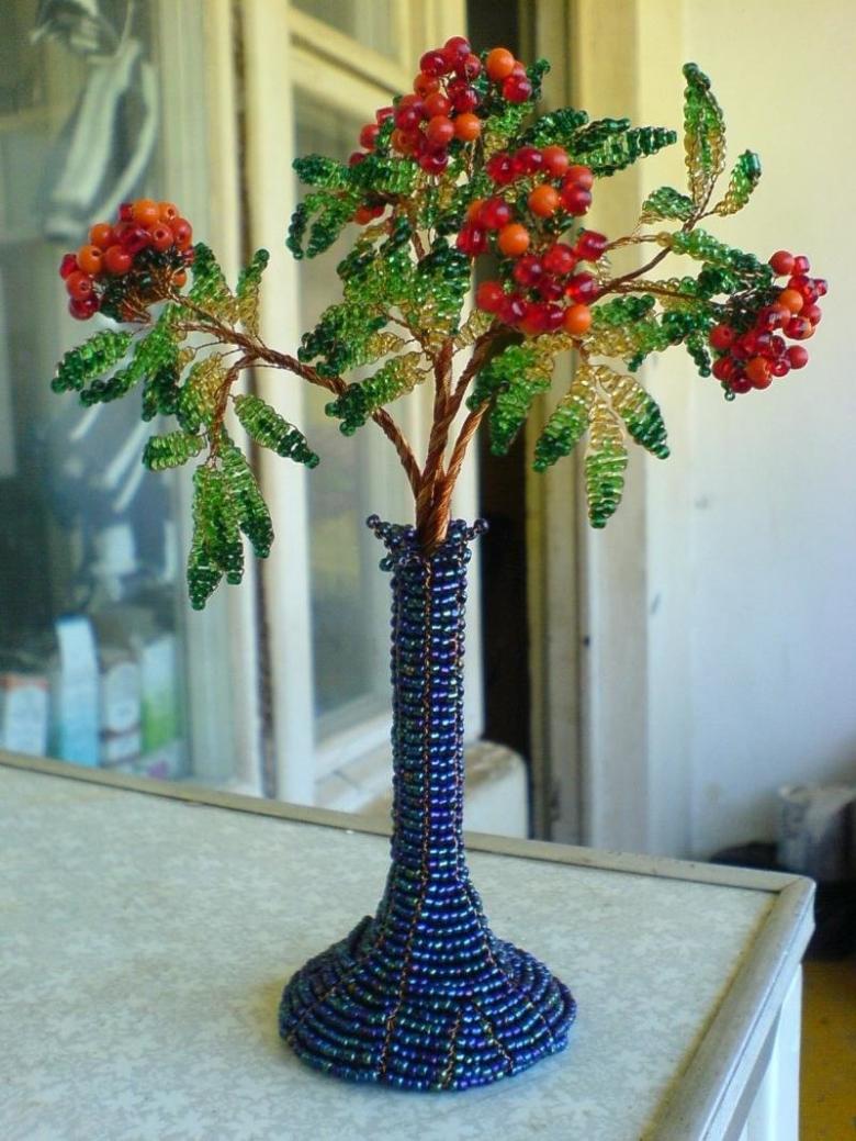 Pour compléter la composition des perles de sorbier, on les insère dans un vase décoratif, qui est préalablement rempli de plasticine ou de plâtre. Une décoration supplémentaire est possible.