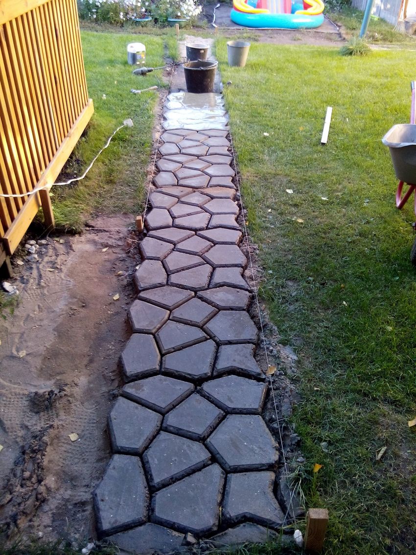 Des chemins de jardin de vos propres mains - comment paver simplement et rapidement de belles dalles à partir de matériaux improvisés en utilisant des formes (91 photos)