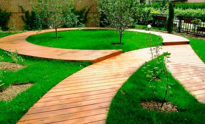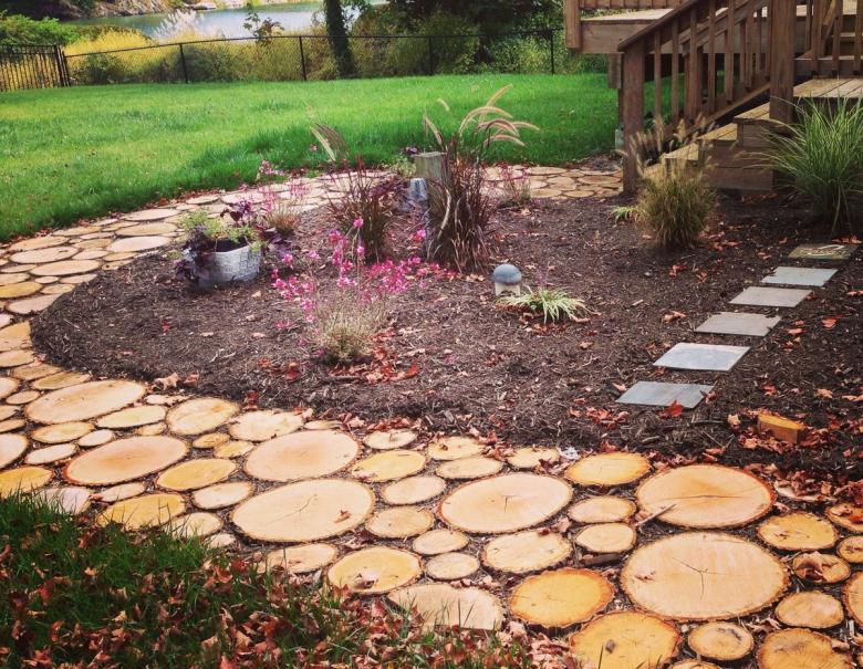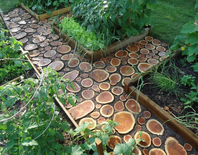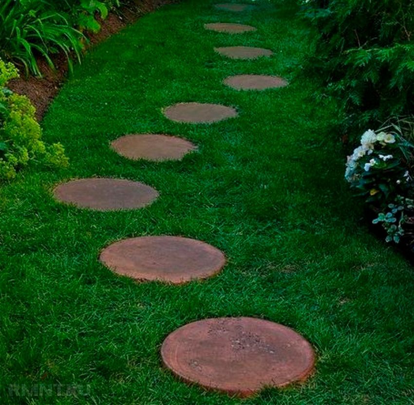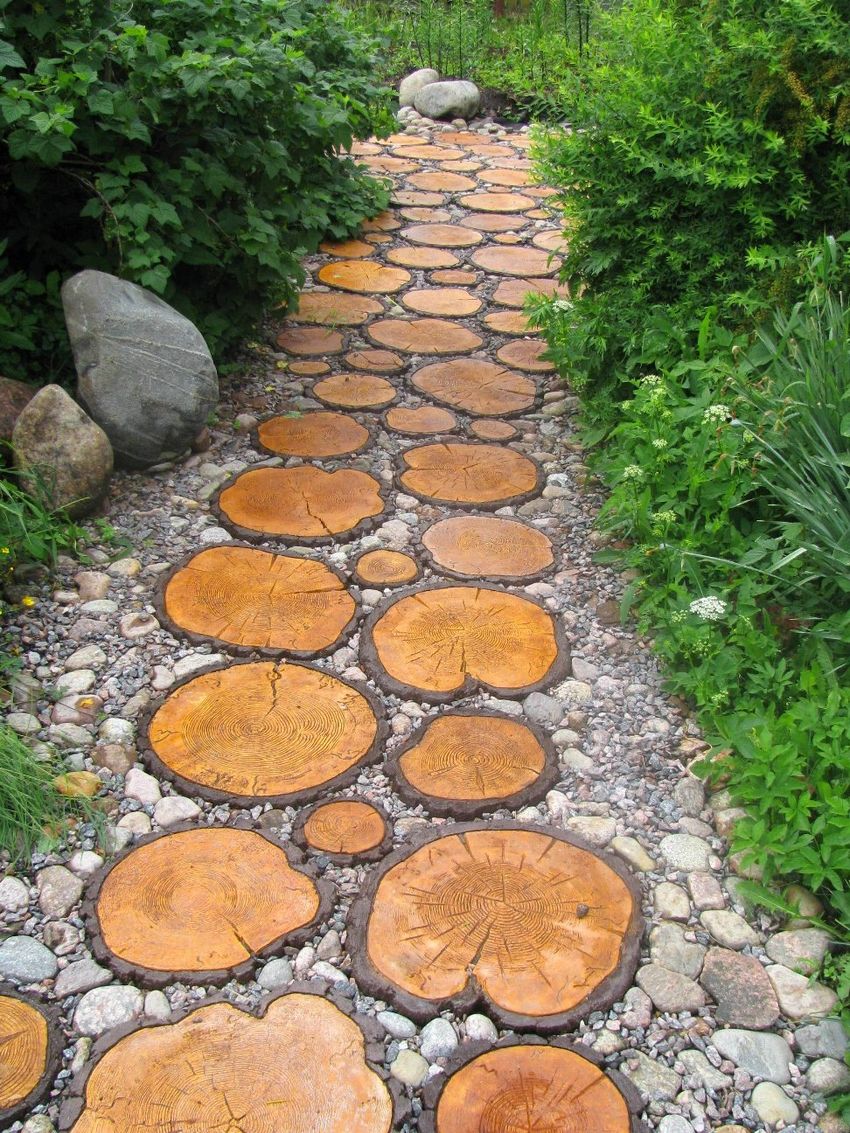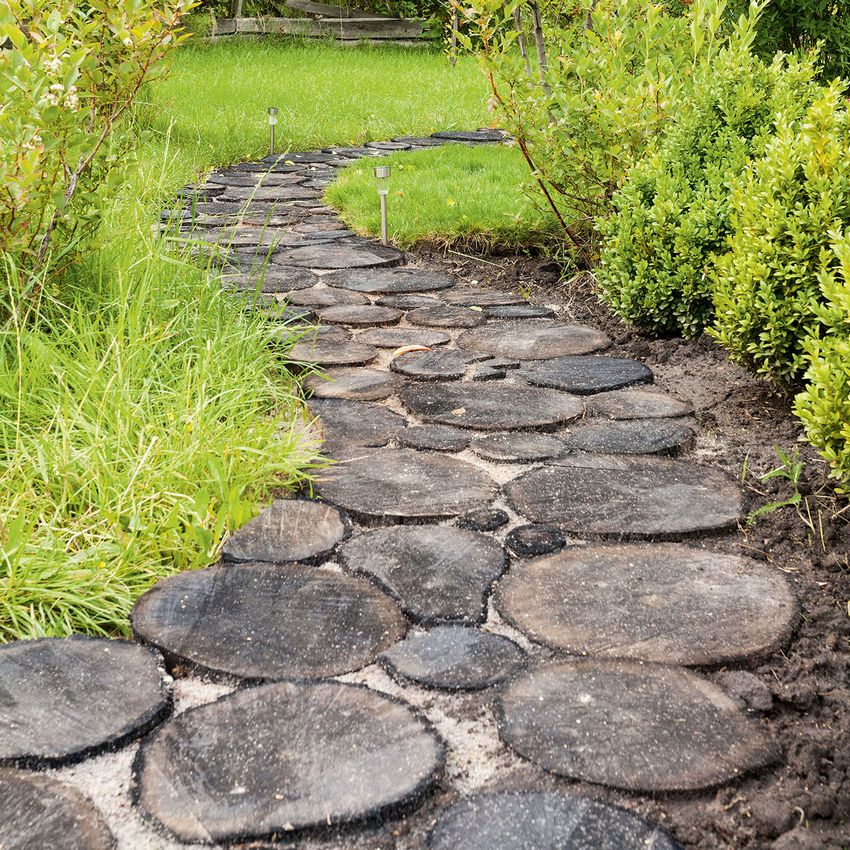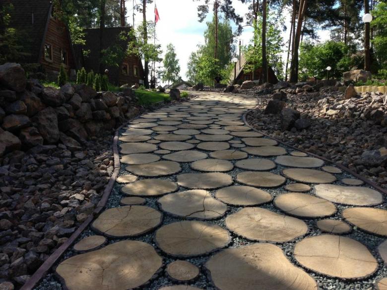 Les chemins faits de bois coupé sont considérés comme les plus faciles à réaliser. Cependant, ils sont très attrayants. Le matériau est facile à trouver - il suffit de conduire jusqu'au bois le plus proche. Les espèces les plus appropriées sont le chêne, le tremble et le mélèze.
