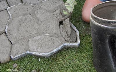 - Construction de la base. La base du chemin peut être en béton (le plus fiable et le plus cher), en ciment ou en sable. Le choix doit être fait en fonction du type de revêtement de sol prévu.