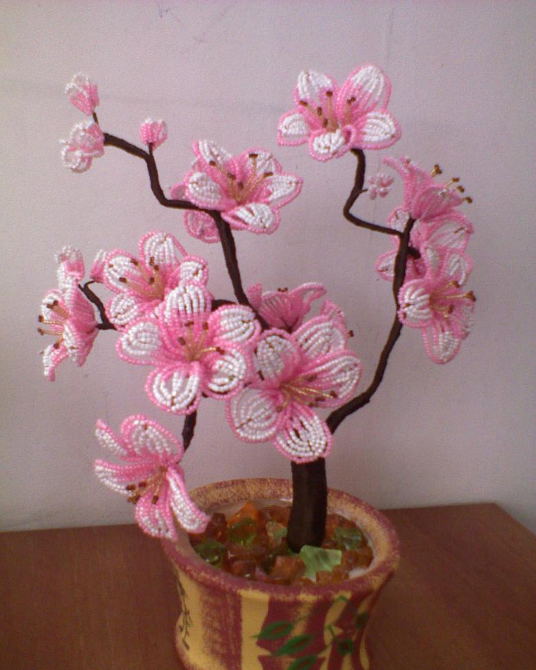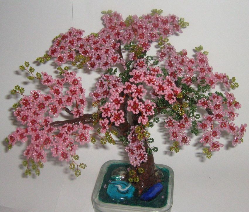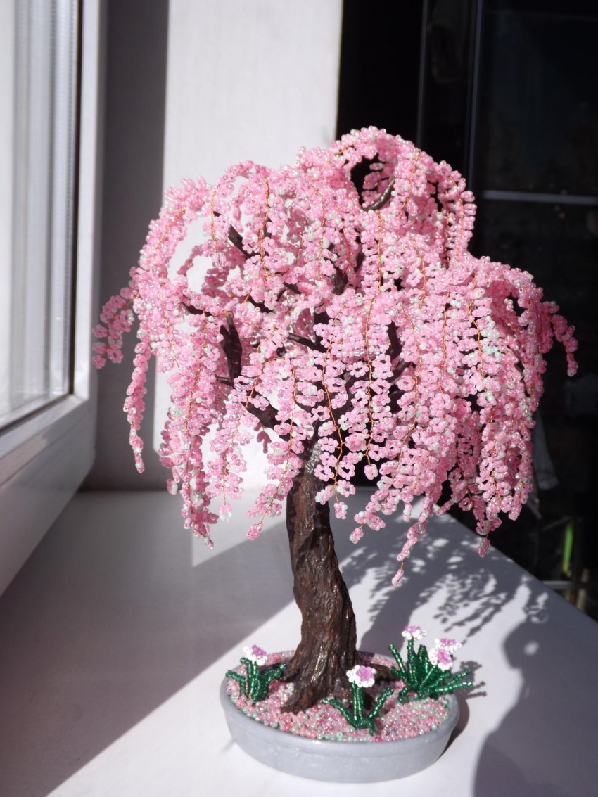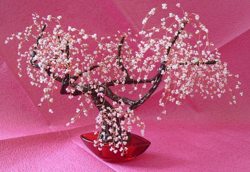 Une autre façon de créer une véritable beauté orientale de vos propres mains est de fabriquer un cerisier perlé. Pour les rendre magnifiques, il faut aussi un peu de temps et de patience.