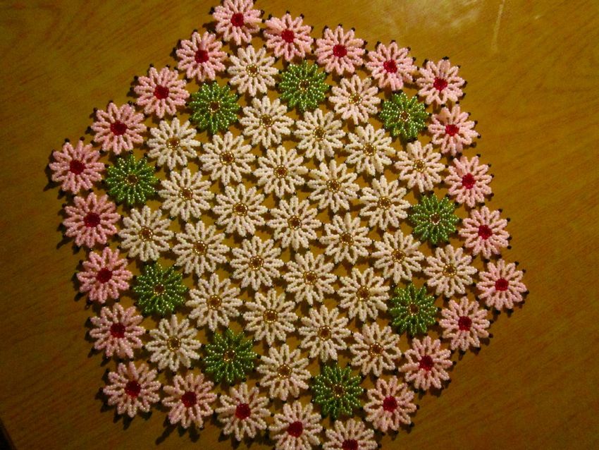 Les napperons perlés sont magnifiques sur n'importe quelle table et peuvent être utilisés sous une variété de vases. Dans le passé, ces napperons étaient même placés sur les téléviseurs. Ils constituent un merveilleux complément à l'appartement et témoignent du goût de l'hôtesse.