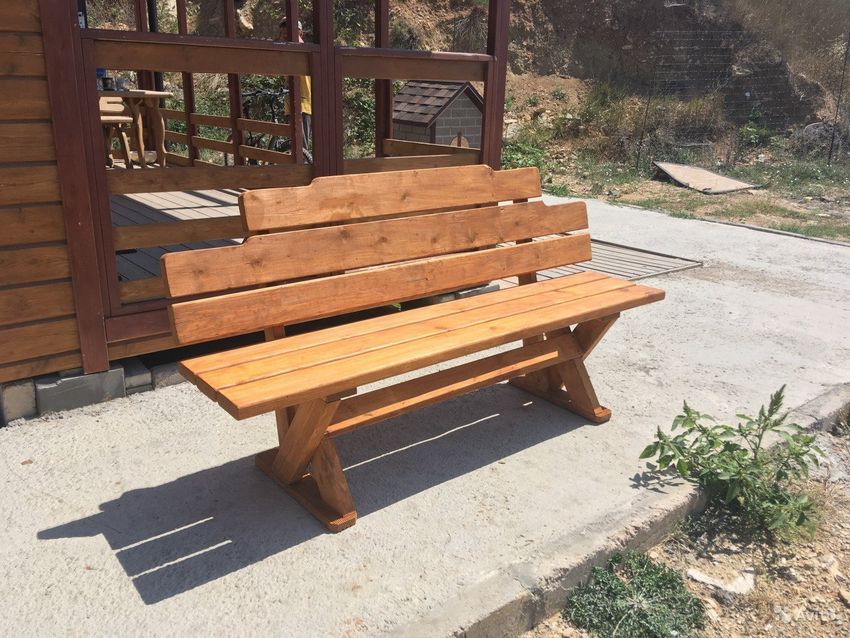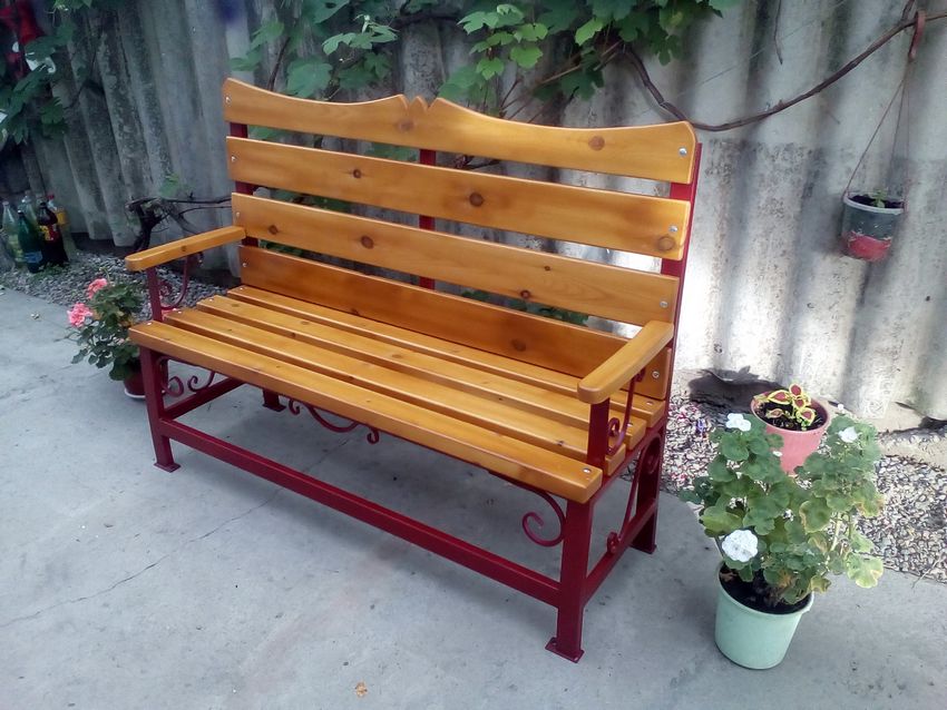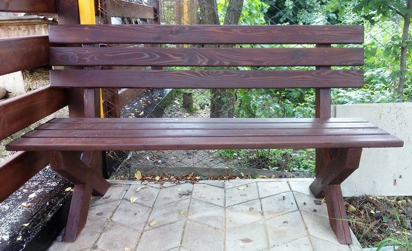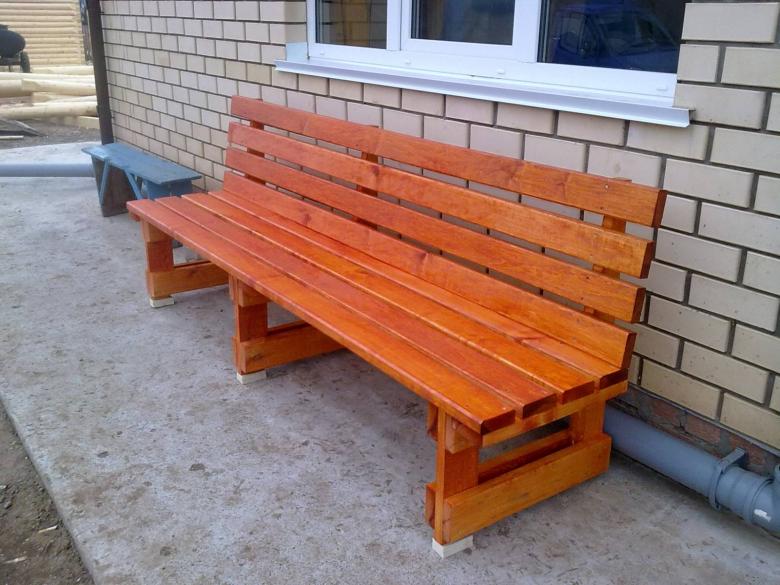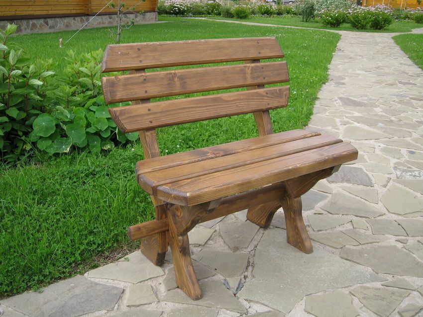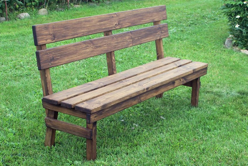 - Un banc en bois avec un dossier - la forme habituelle est complétée par un dossier haut ;