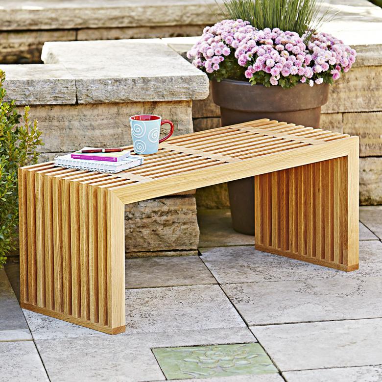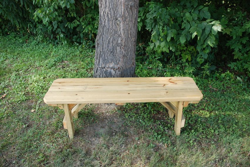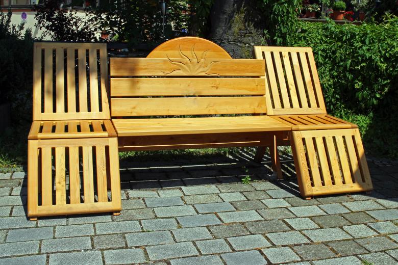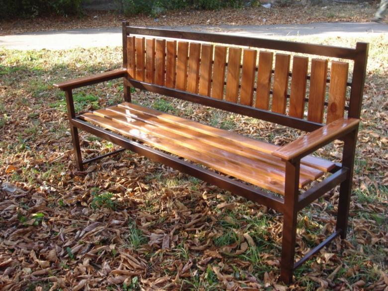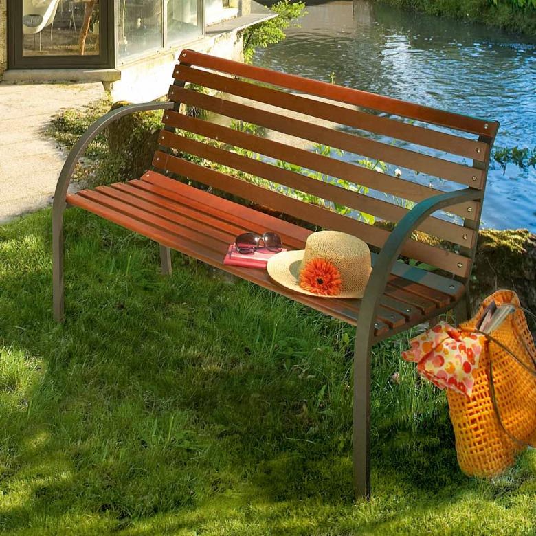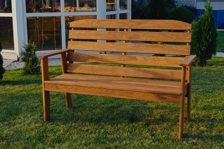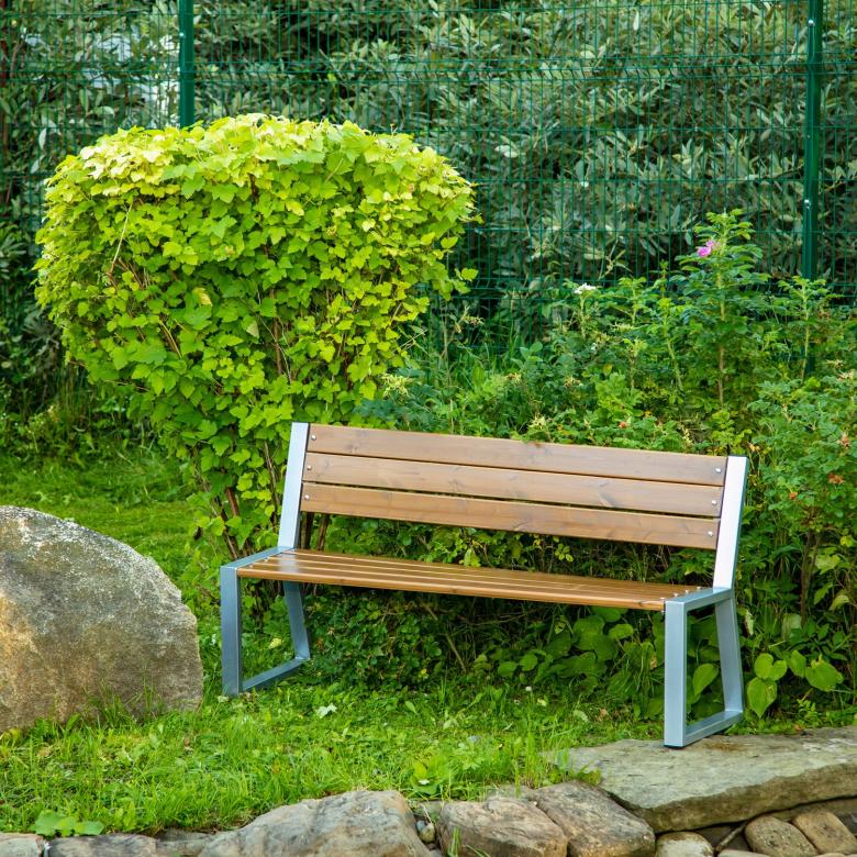 - Un banc en bois avec un dossier - la forme habituelle est complétée par un dossier haut ;