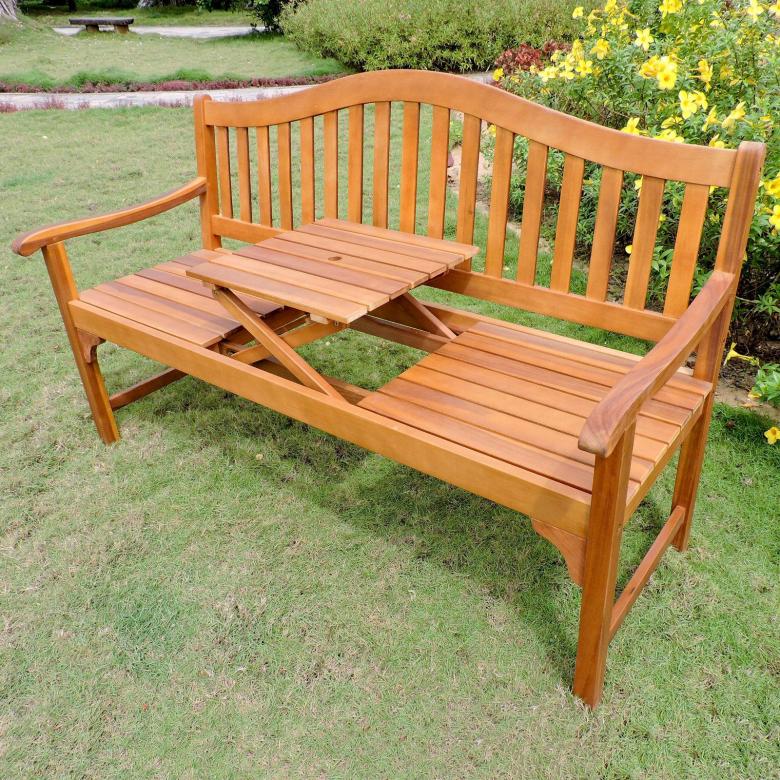 - Un banc combiné à une table - la table peut partager l'espace d'assise au milieu, ou est située sur le bord ;