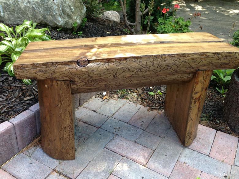 - Une grume est sciée dans le sens de la longueur et du centre en deux moitiés, une pour le siège et une pour le dos.
