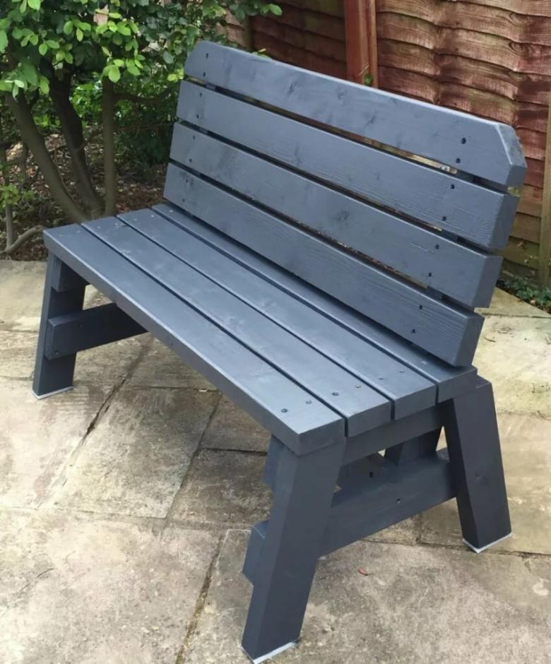 Le type de banc le plus simple, les palettes sont déjà dans une taille standard, et il est facile de les adapter à la forme souhaitée du banc.