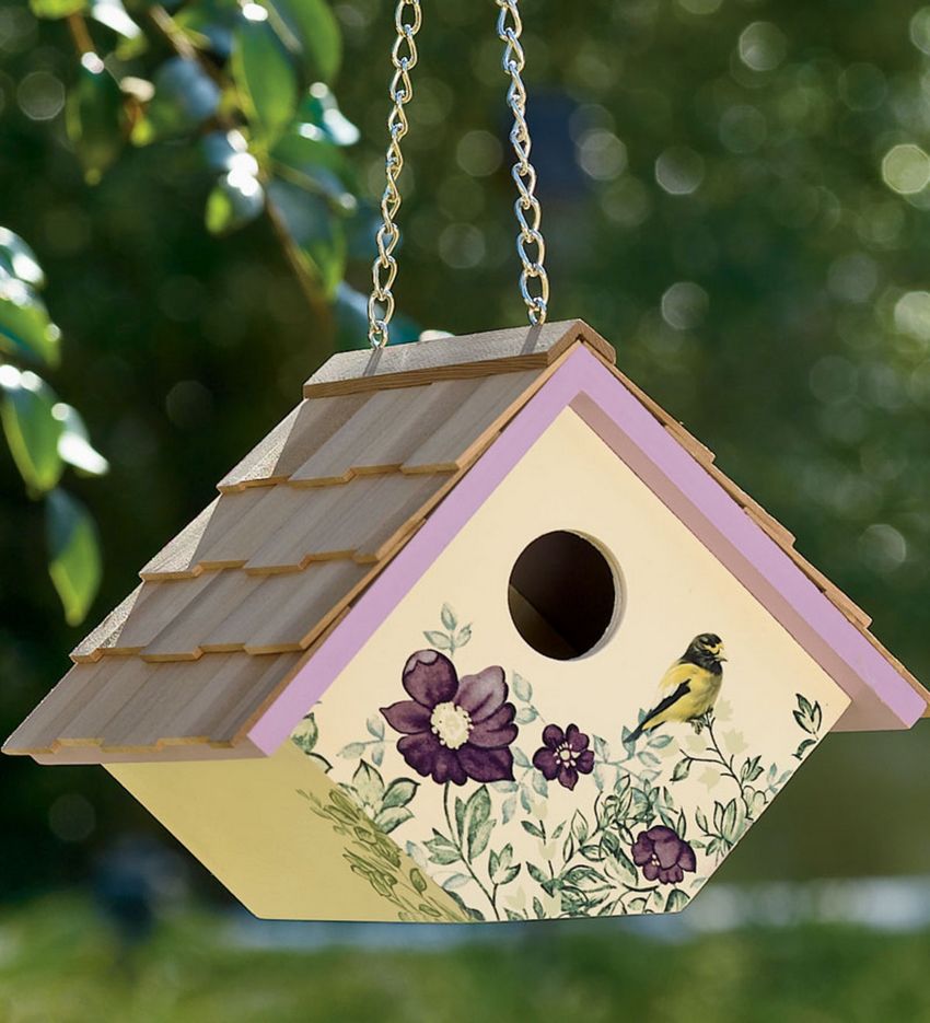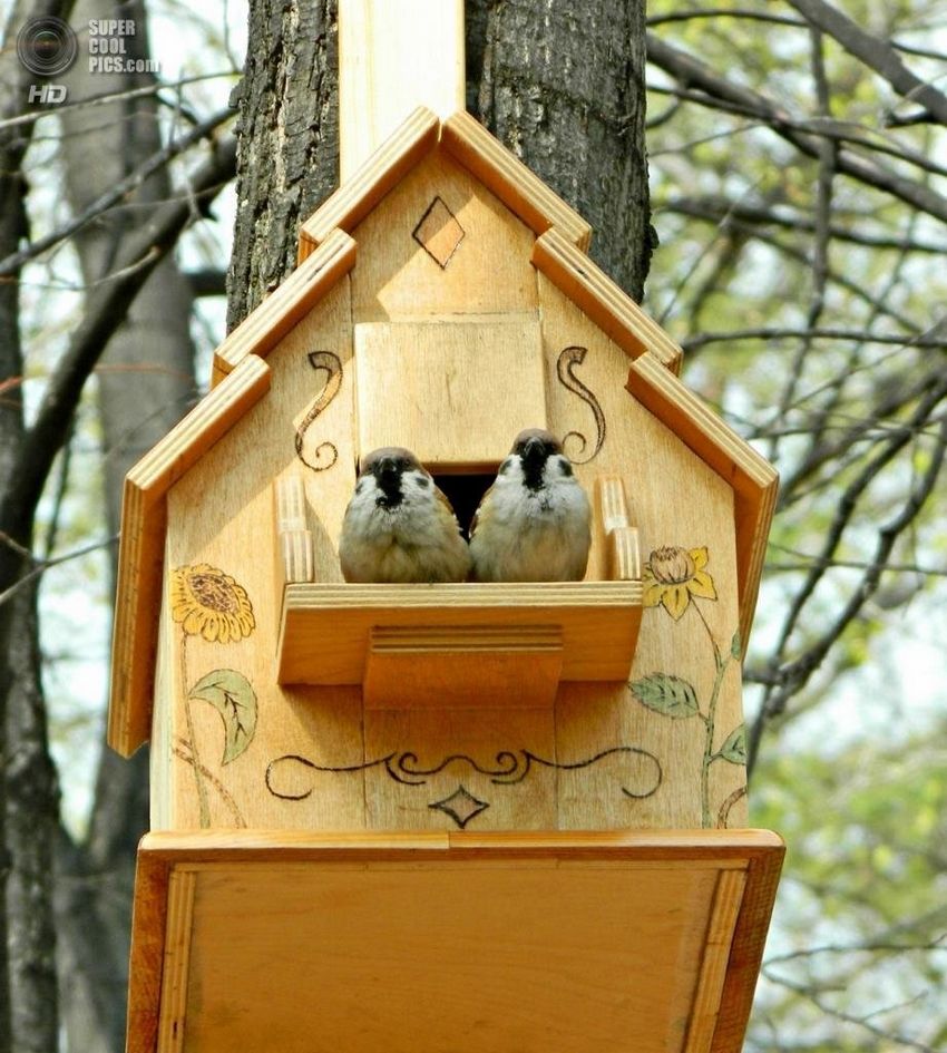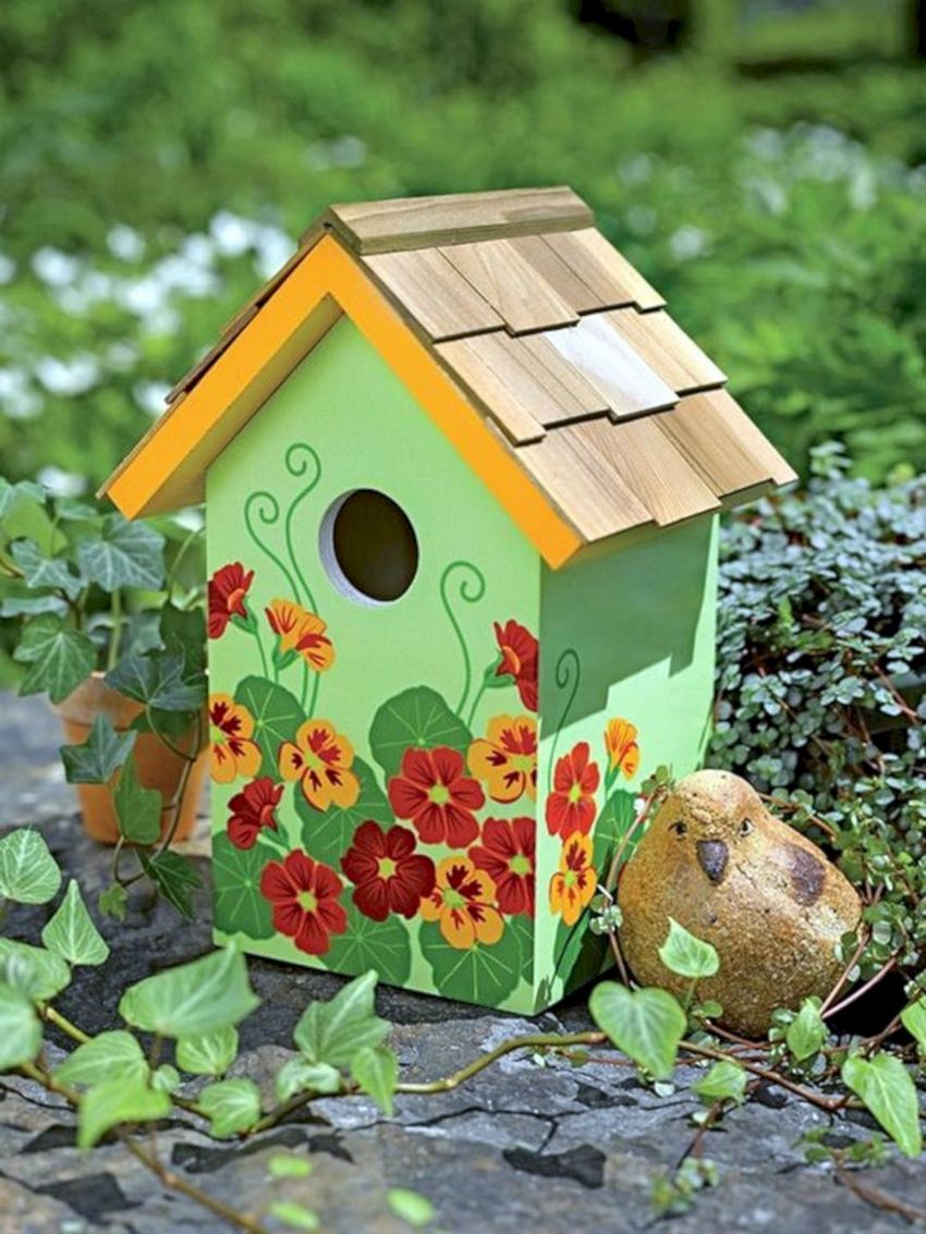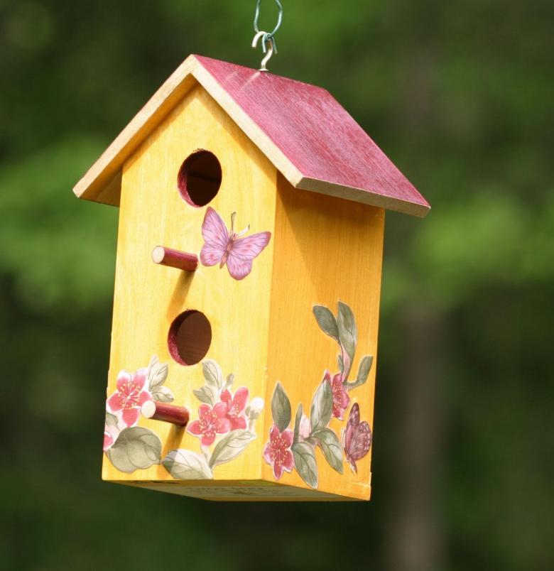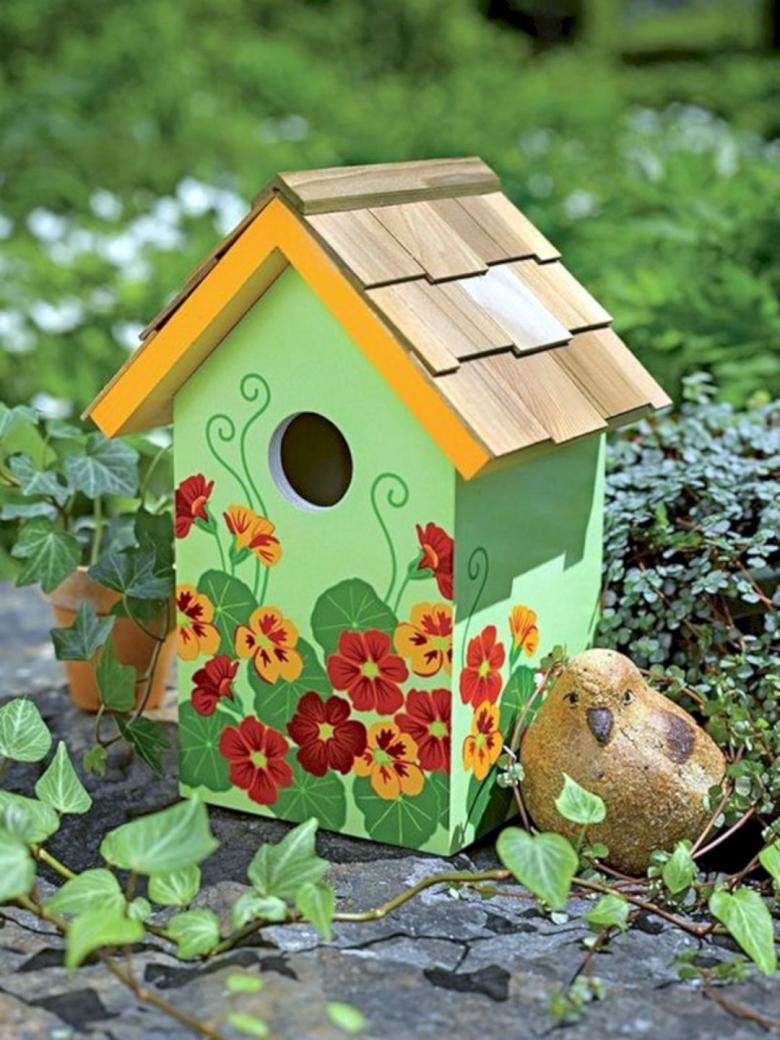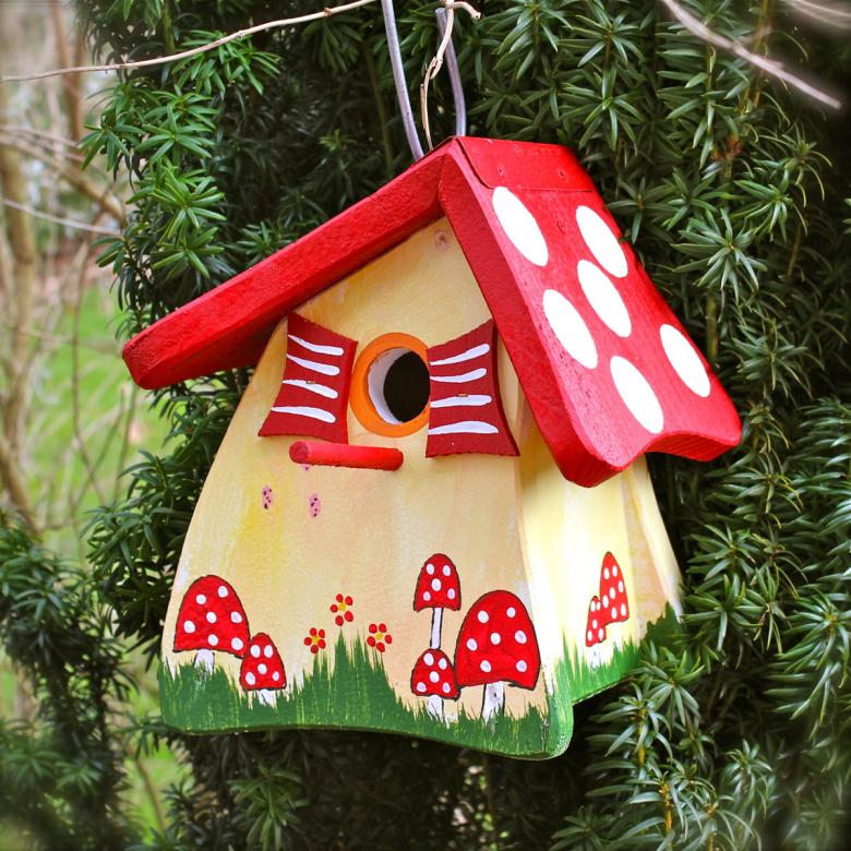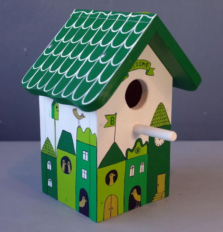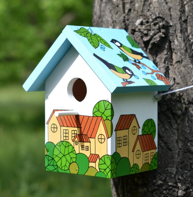 Les nichoirs exclusifs peuvent être décorés avec des peintures résistantes à l'eau. Avec les enfants, vous pouvez créer une fresque spéciale, élégante et inhabituelle. Par exemple, peignez des fenêtres, des fleurs, des rayons de soleil, tout ce que votre fantaisie peut faire.