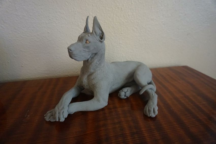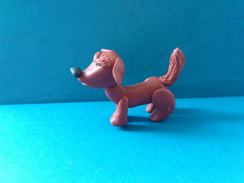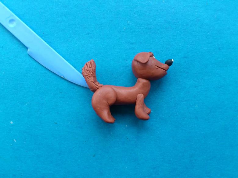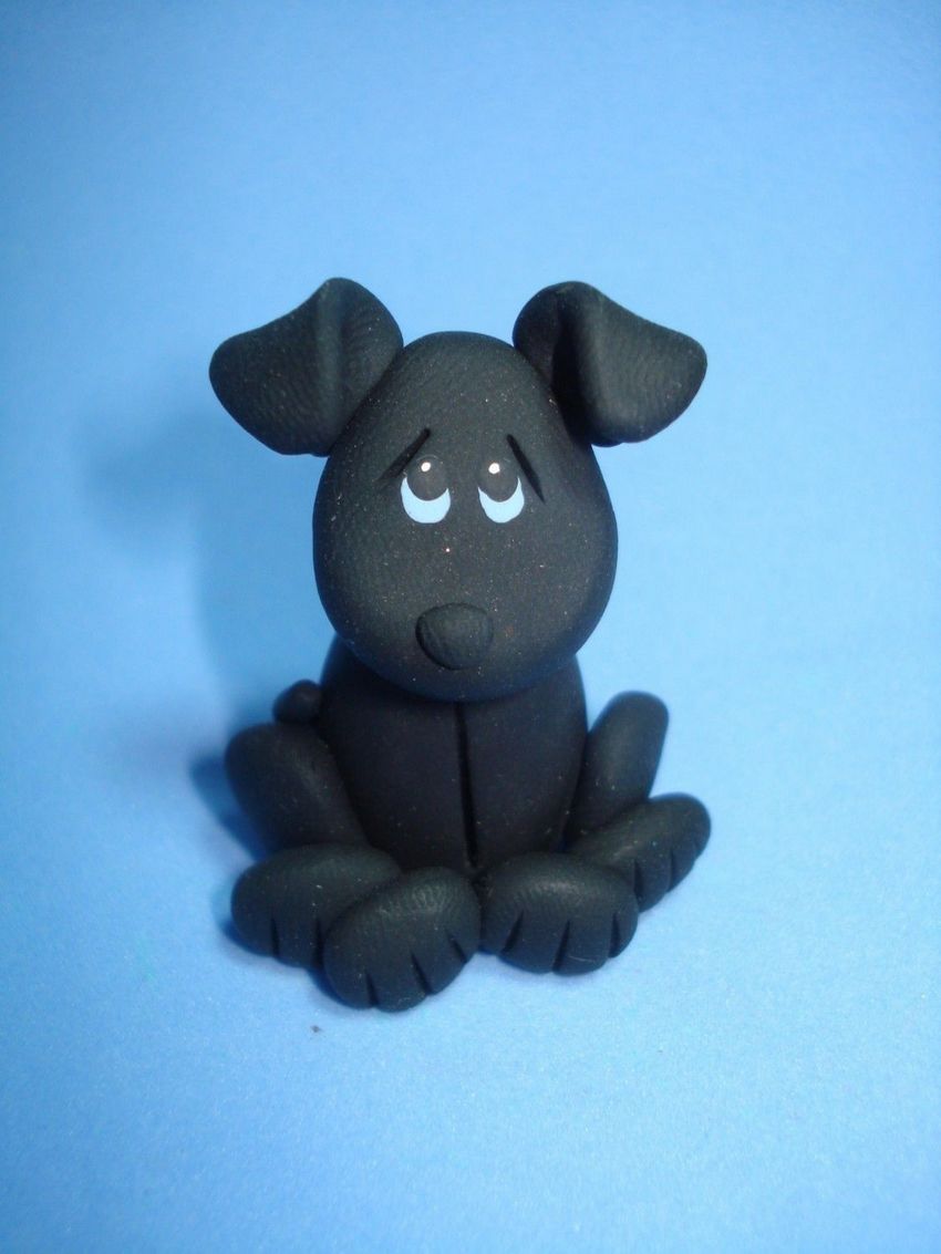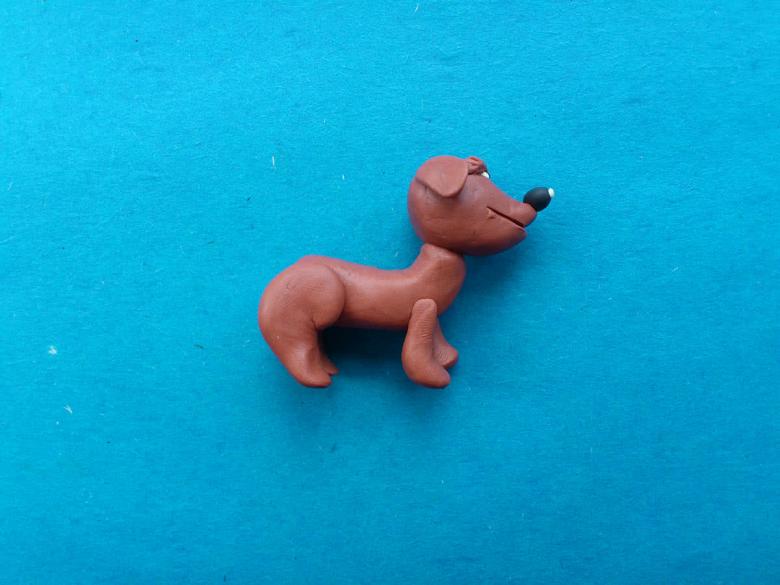 - Utilisez de petites boulettes d'argile noire pour colorer tout le corps du chien.