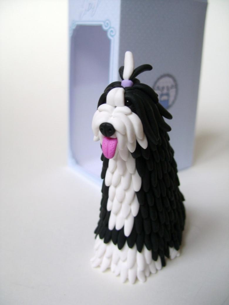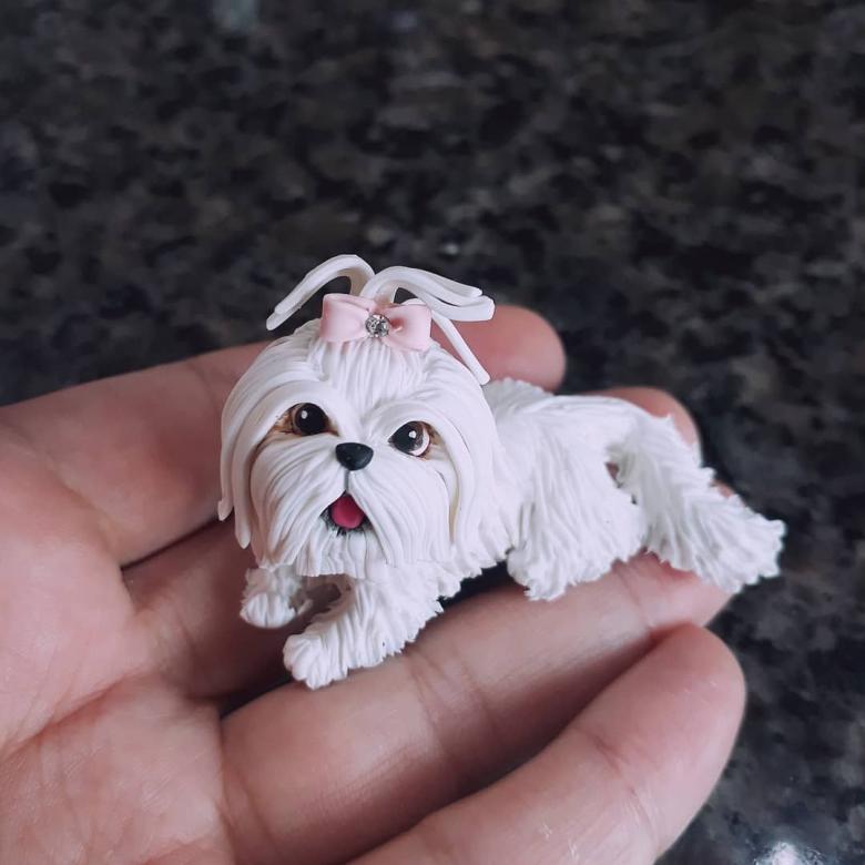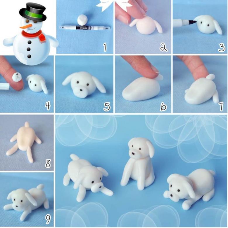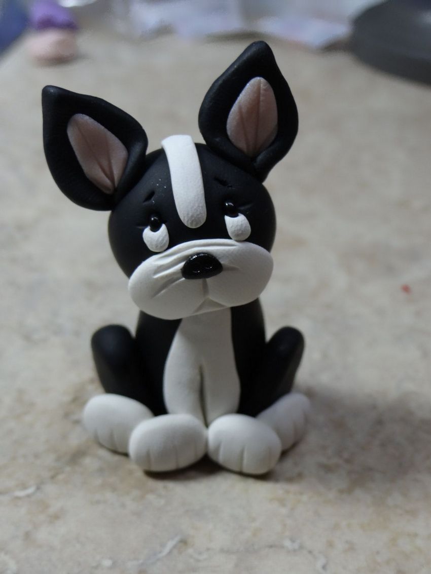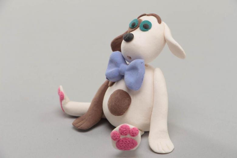 Un joli chien d'intérieur sera facile à mouler. Pour le mouler, vous aurez besoin d'un cure-dents traditionnel, de beaucoup de pâte à modeler blanche, de pâte à modeler noire et de pâte à modeler rose pour le nœud de la créature fantaisiste et fantasque.