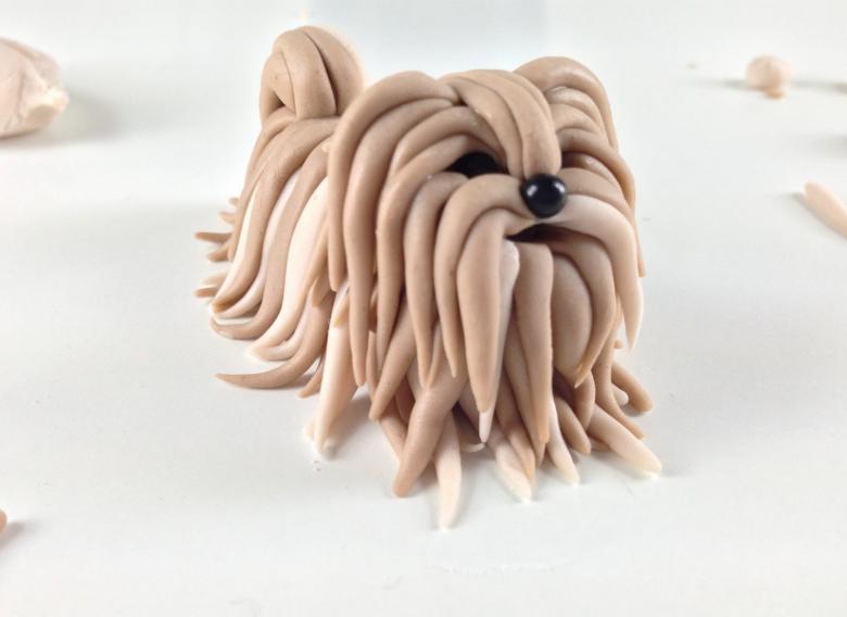 - Déchirez un petit morceau du moule préparé pour décorer la tête du chien d'intérieur.