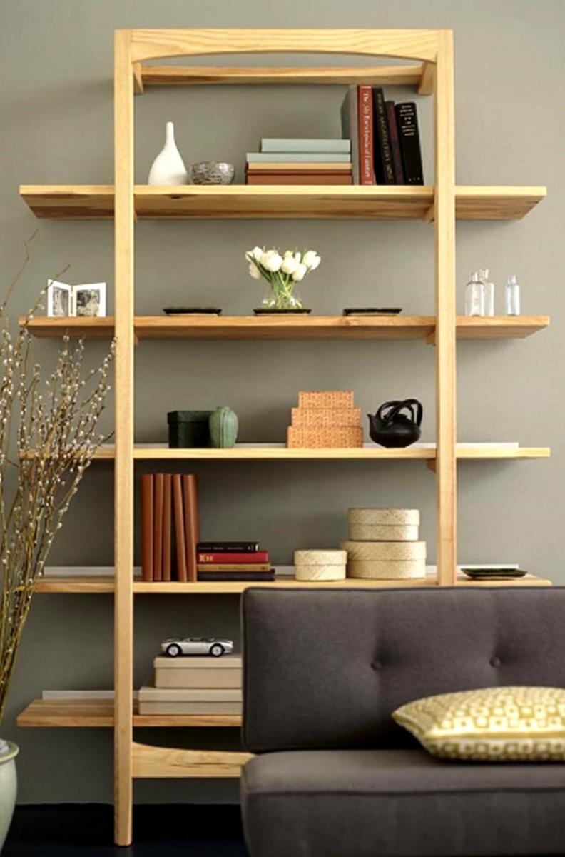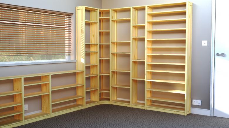 - En termes de taille, il existe de grandes étagères sur pied qui atteignent le niveau du plafond et des étagères miniatures qui font la moitié de la hauteur. La taille appropriée est choisie en fonction de la taille de la pièce, de l'emplacement des autres meubles dans la pièce, de la hauteur du plafond et de l'emplacement des ouvertures de fenêtre.