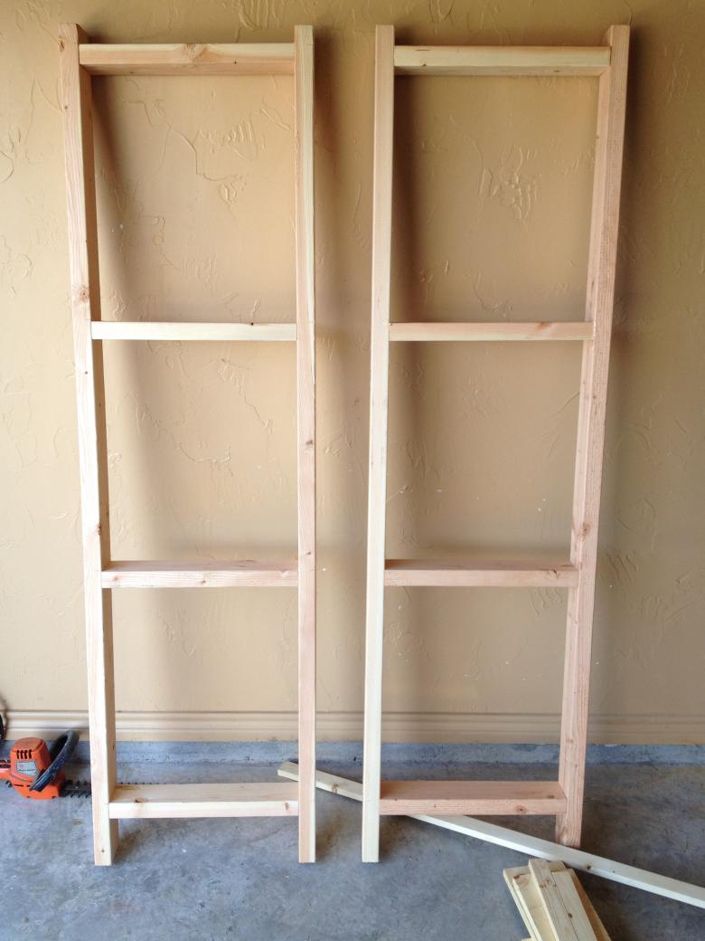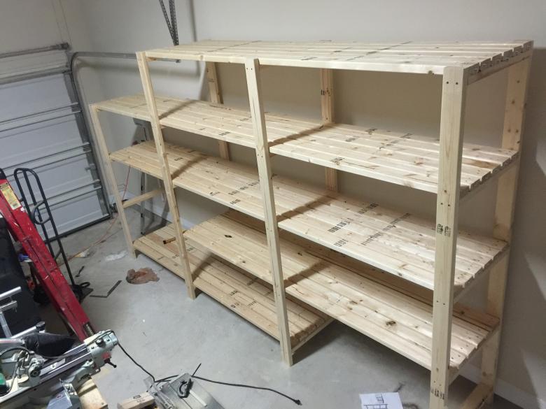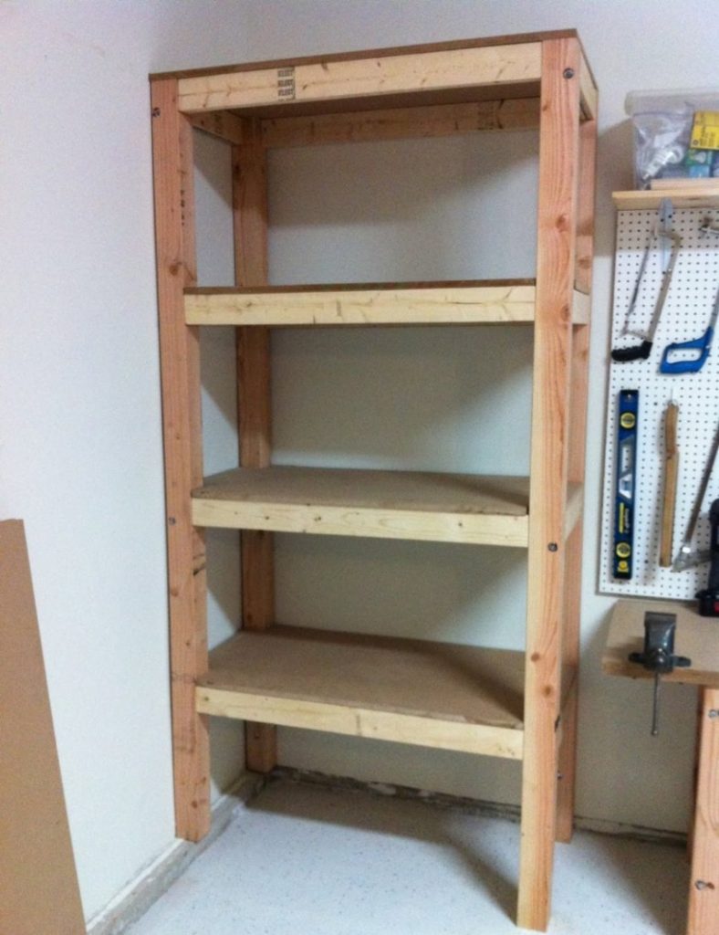 On connaît également la méthode d'assemblage originale, dans laquelle les joints sont préparés à l'avance sur les surfaces respectives. Le cadre est d'abord assemblé : bois (à sens unique) ou tubes profilés soudés. Ensuite, soudez ou posez les côtés pour les futures étagères. Empilez les étagères en vous assurant que toutes les surfaces horizontales sont de niveau (à l'aide d'un niveau à bulle).