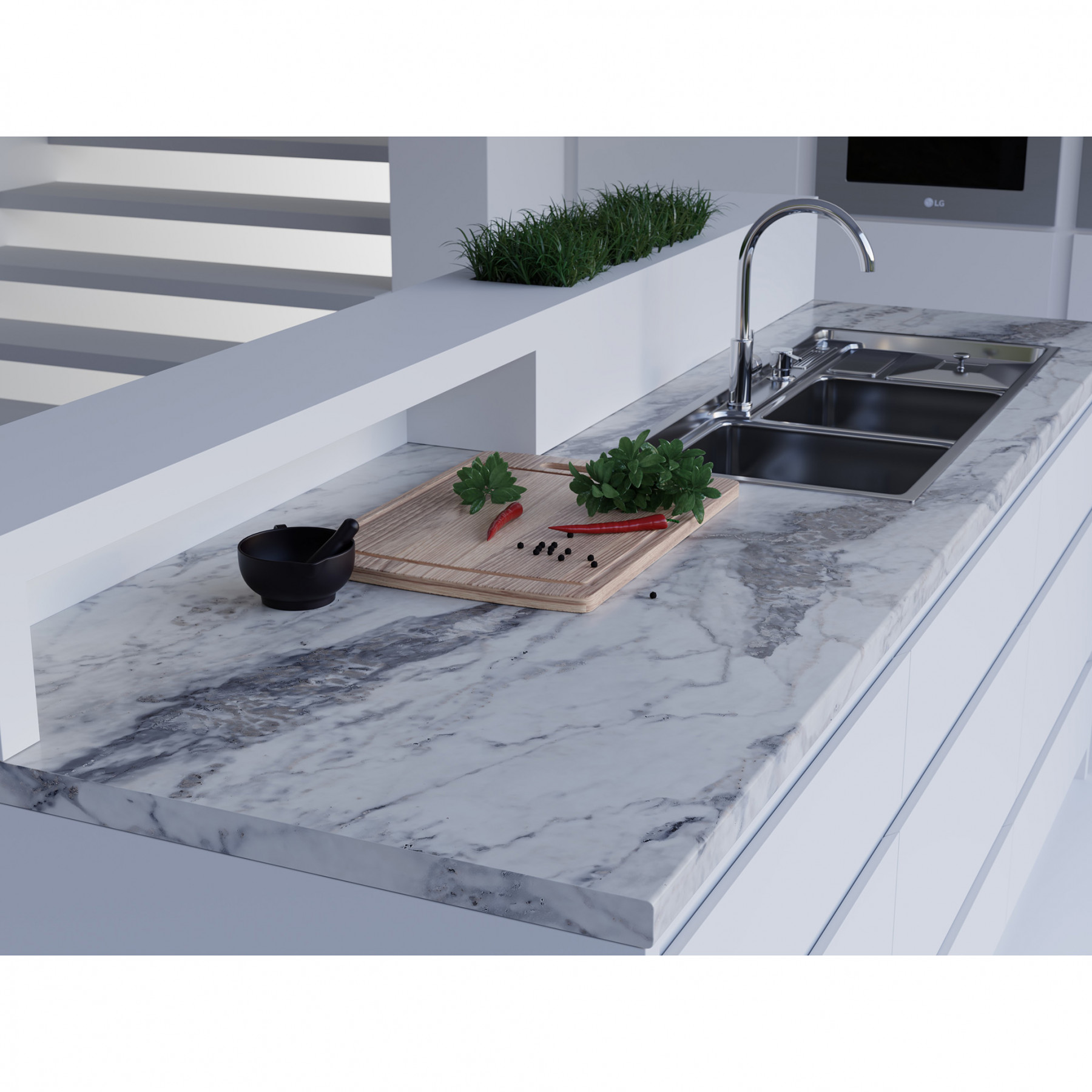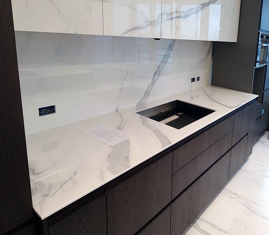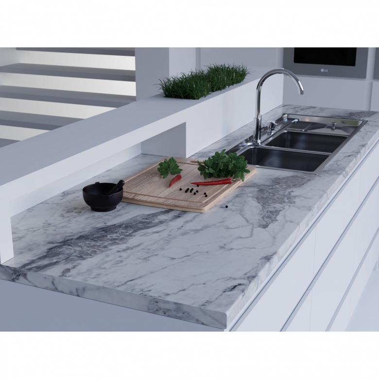 Le grès cérame est pratiquement impossible à distinguer de la céramique, mais il présente un avantage important, à savoir une résistance accrue qui se traduit par la durabilité du matériau. Les tailles les plus courantes sont 60 par 60 cm, ou 120 par 60 cm. Par conséquent, l'utilisation d'une telle zone permet d'obtenir une surface uniforme, c'est-à-dire une dalle sans soudure. Il est donc très difficile d'endommager un plan de travail de ce type.
