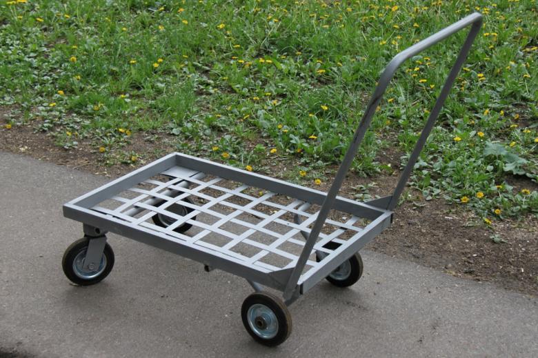 Un tel chariot sans poignées sera difficile à utiliser, car il est peu pratique. C'est pourquoi ils peuvent être fabriqués en métal ou en bois. Chaque fond de chariot comporte des saillies sur lesquelles ils peuvent être fixés. Il est nécessaire de fixer les poignées des deux côtés.