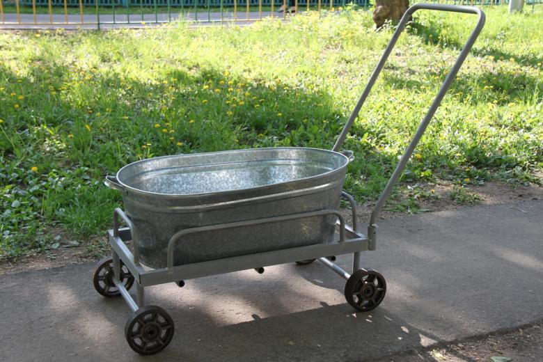 Il existe de nombreuses façons de s'acquitter de cette tâche. Le plus simple est de trouver une brouette toute prête et de travailler avec elle. La structure inférieure est conçue pour fixer les roues. Pour cela, il suffit d'utiliser des tiges métalliques solides, qui permettront à la fois de faire tourner les roues et de maintenir la structure en place.