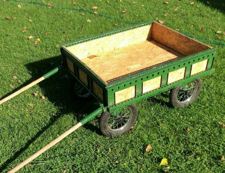 Cette version d'un chariot à deux roues pour le transport de marchandises, fabriquée de vos propres mains, peut être une bonne alternative aux options achetées.