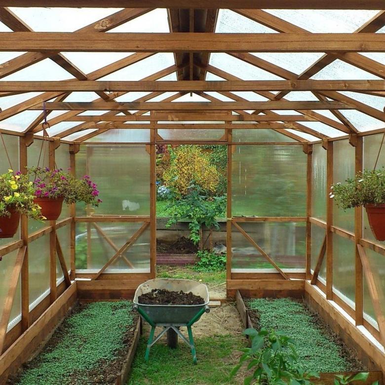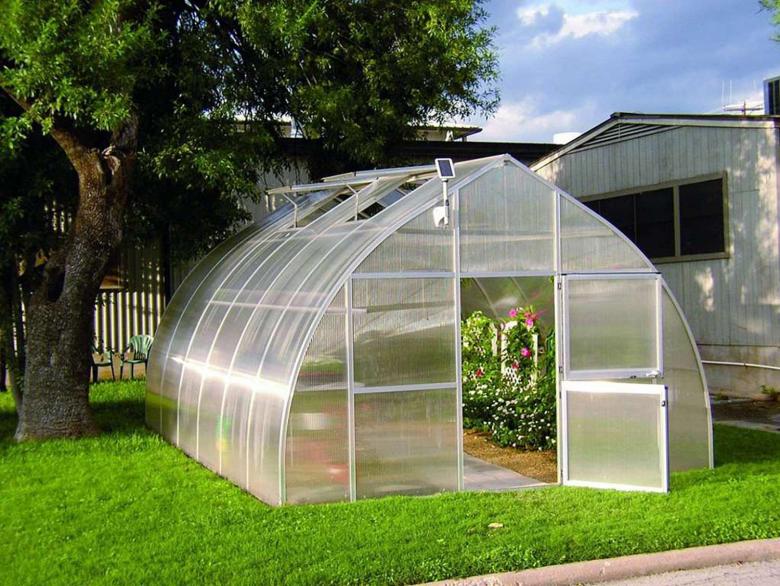 - Le verre est une couverture solide, il fournira suffisamment de lumière aux plantes, mais la structure sera lourde, et si vous considérez également qu'elle devra résister au poids de la neige et aux rafales de vent, l'armature devra être renforcée.