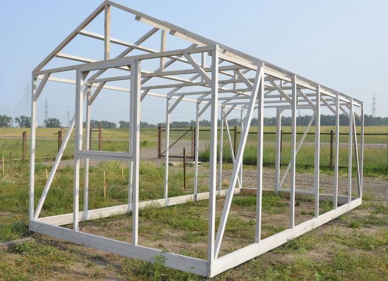 - Fixez des chevrons intermédiaires tout le long de la partie supérieure de la serre, en les sécurisant en plus avec des poutres horizontales ;