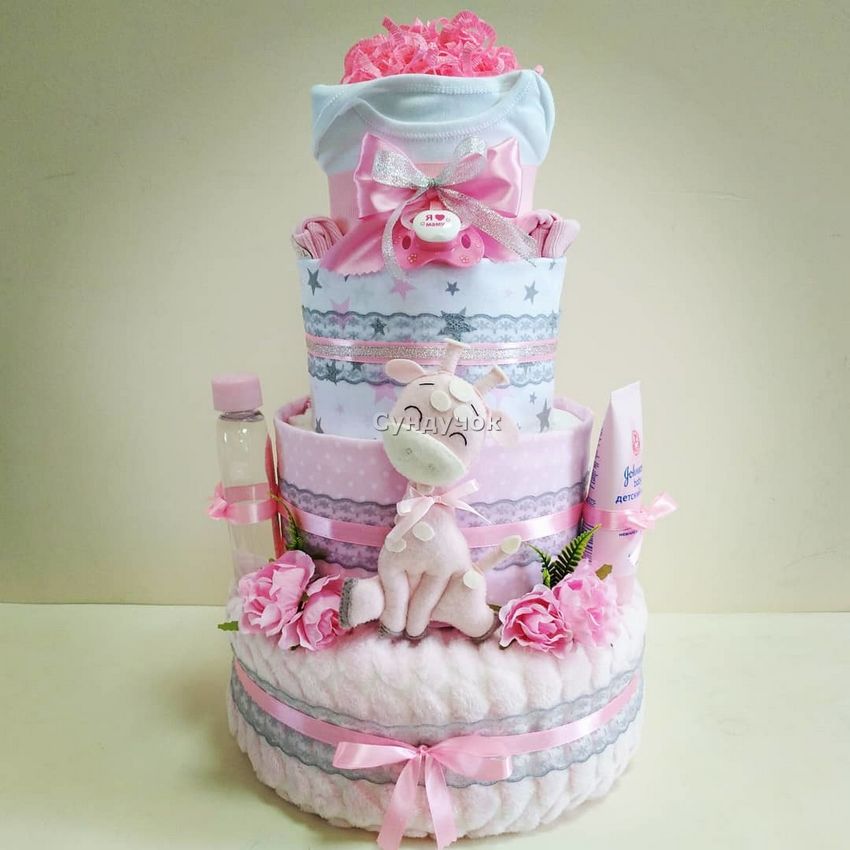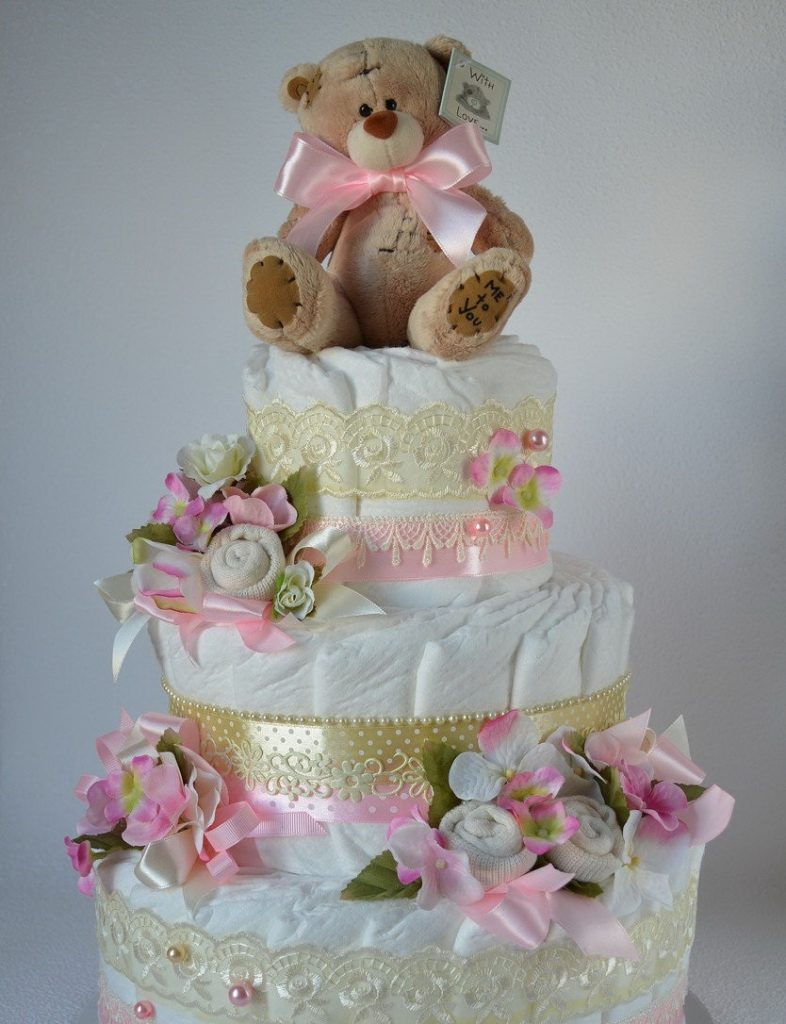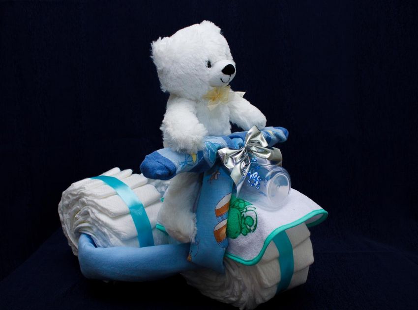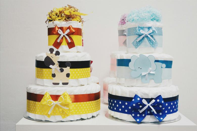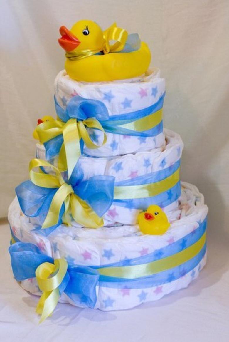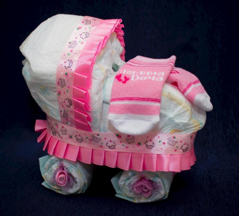 Outre les gâteaux à plusieurs étages, il est également possible de créer des compositions insolites, en maîtrisant au préalable les techniques de travail de ces matériaux. Ces cadeaux originaux et non conventionnels restent aussi utiles que possible, mais ils vous permettront également de faire plaisir aux parents de votre bébé grâce à leur solution non conventionnelle :