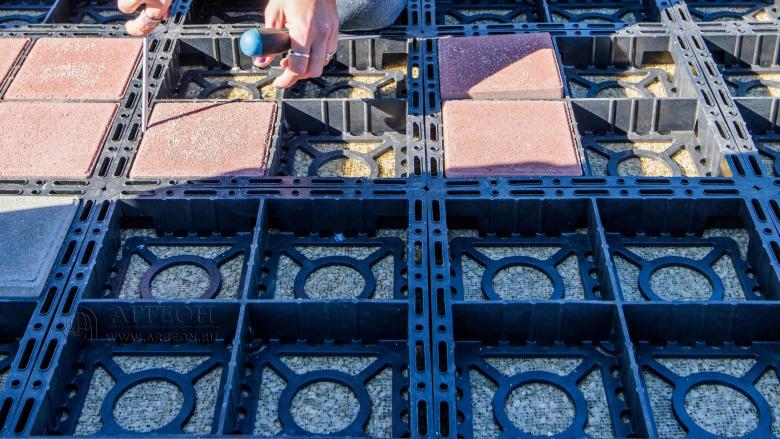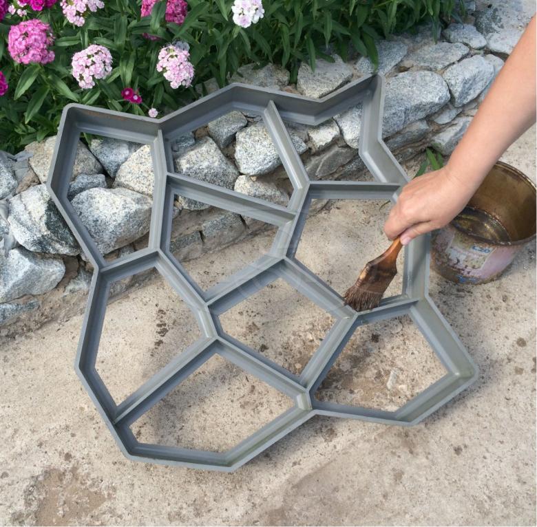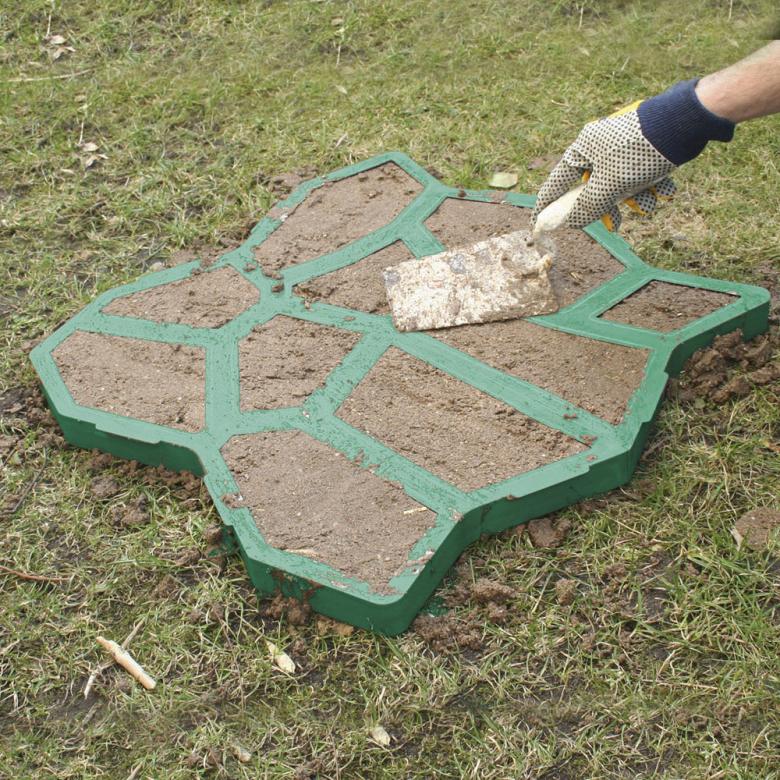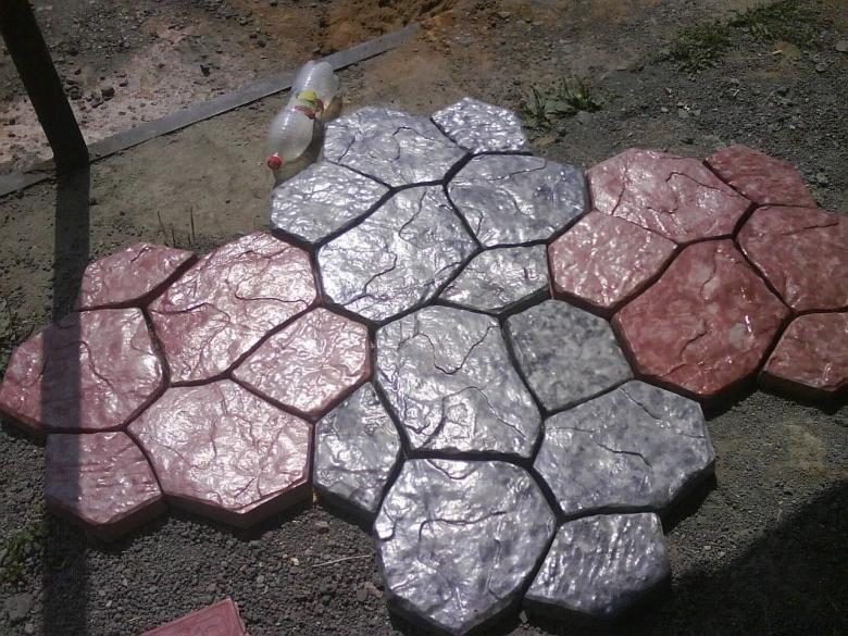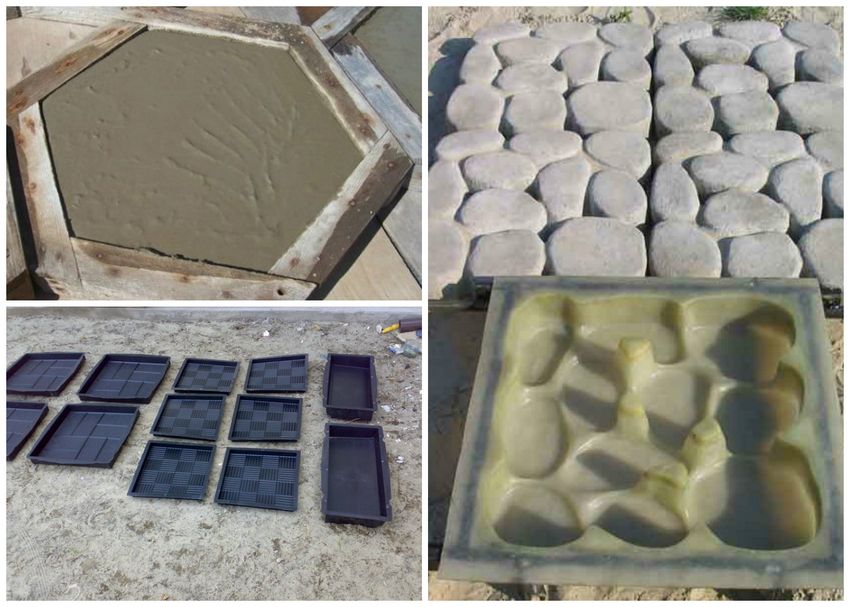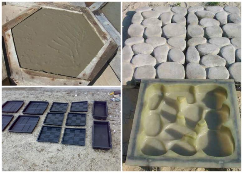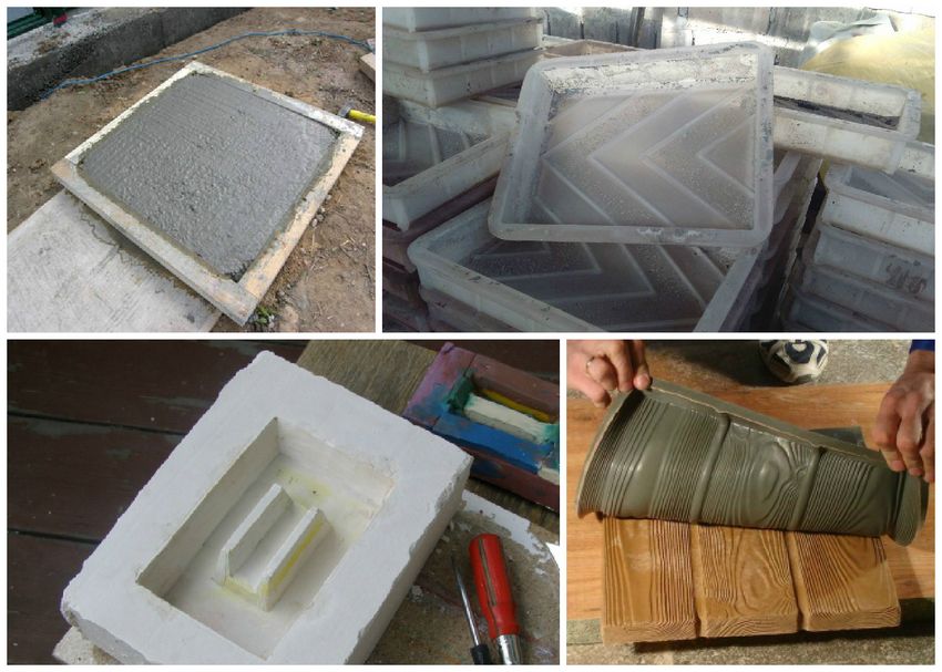 Des moules en plastique ou en silicone sont désormais disponibles dans les hypermarchés de matériaux de construction. Ils vous permettent de mouler le pseudo-dallage en place. Ces moules à pavés sont dotés d'un certain nombre de joints nervurés qui forment diverses formes géométriques.