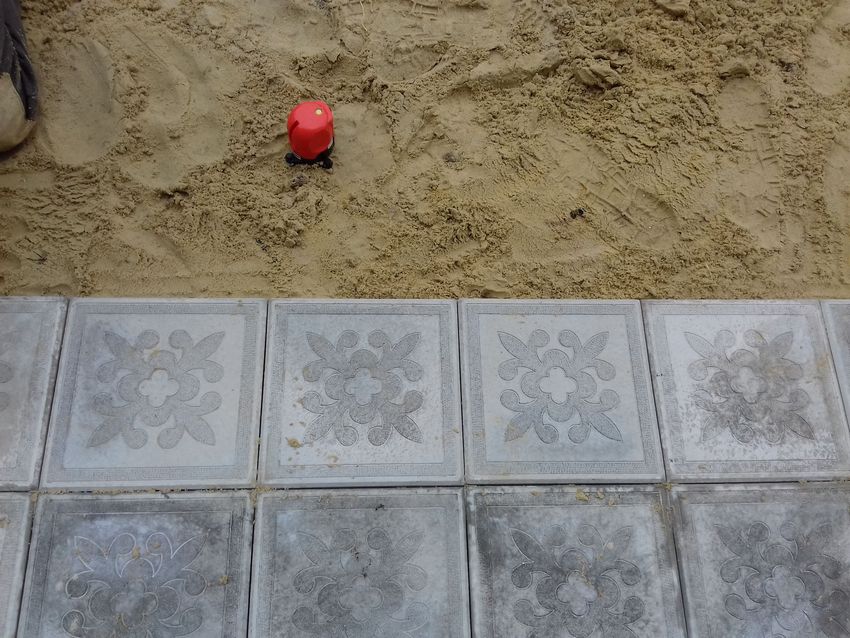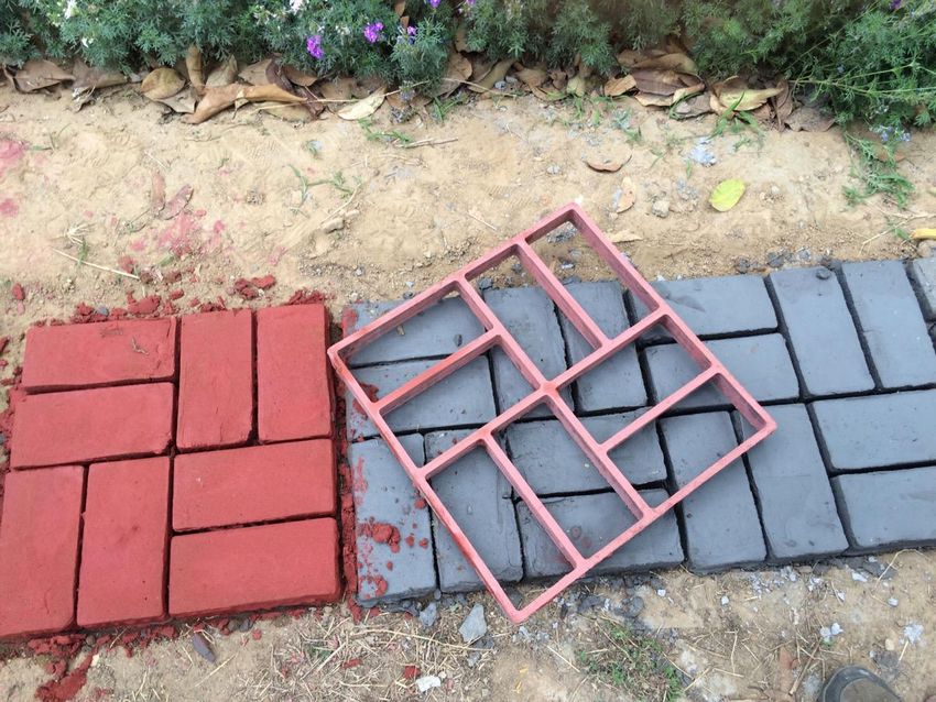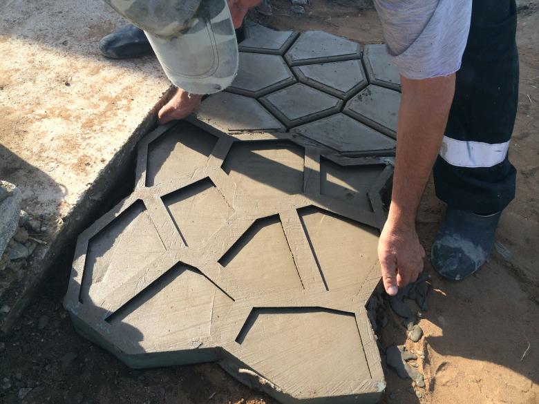 - Au bout d'une heure, le moule est retiré et déplacé vers un nouvel emplacement pour continuer à couler la pièce suivante de l'allée en "tuiles".