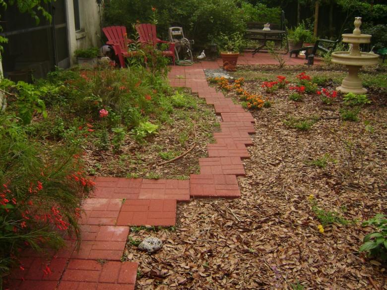 - Enlevez la couche de végétation le long du tracé du futur sentier, ajoutez du sable grossier, versez de l'eau et compactez bien le tout.