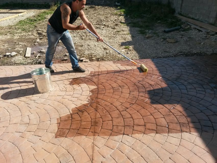 - Versez le plastifiant dilué dans le bac ou l'auge avec l'eau préparée. Ajouter ensuite le ciment, le sable et la pierre fine concassée, en mélangeant constamment. Versez enfin le colorant. Si aucun récipient approprié n'est disponible, le mélange peut être effectué à l'aide d'une pelle dans une zone ouverte.
