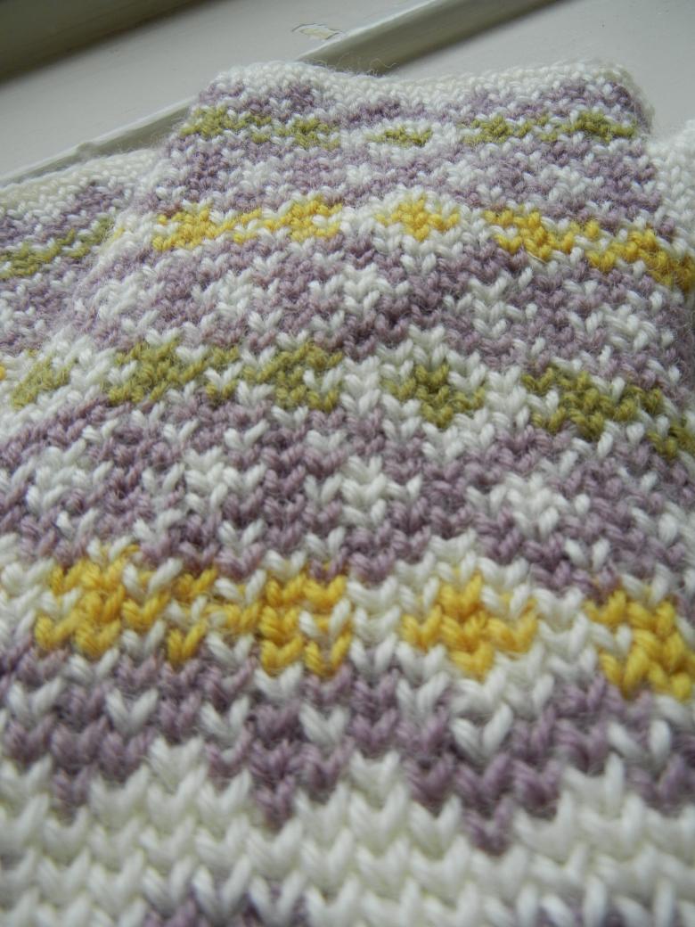 Ce processus de tissage déforme le tissu sur les bords, il faudra donc l'étuver avant de le porter ou le finir plus tard. Pour ce faire, trempez le tricot (lavez-le si nécessaire), étirez-le humide sur un tissu lourd et fixez-le avec des épingles à nourrice.