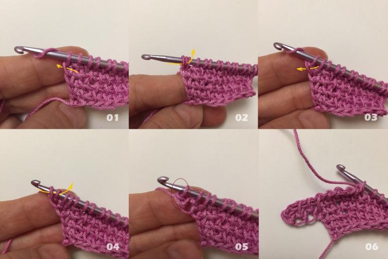 Il existe plusieurs types de tricotage tunisien ou afghan. Examinons-les tous dans les exemples suivants :