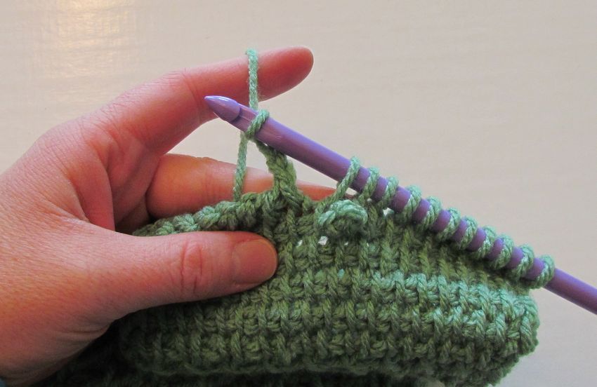 Le premier et le deuxième point de tous les points d'aiguille du tricot tunisien se font de la même manière que dans la couture classique. Ensuite, vous tirez le fil à travers le centre de la boucle inférieure, puis à travers l'arrière du fil pour créer un point de satin sans couture. Terminez les rangs de la même manière que pour un afghan classique.