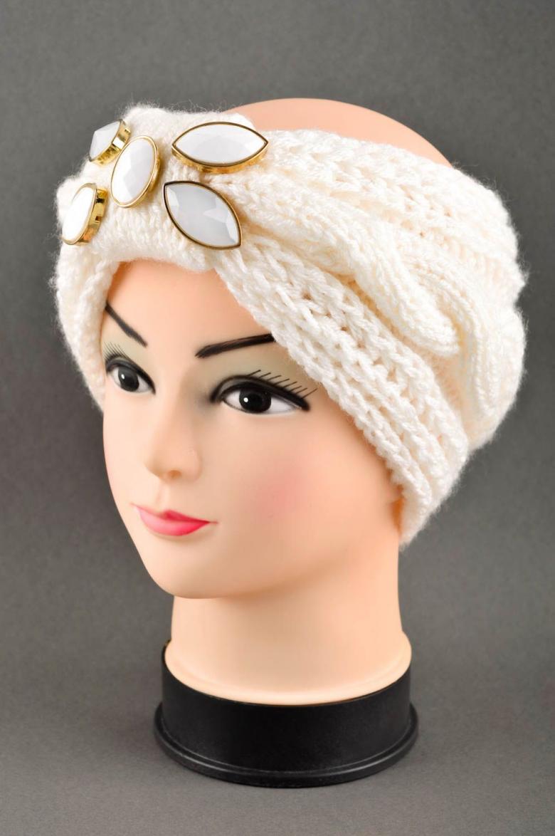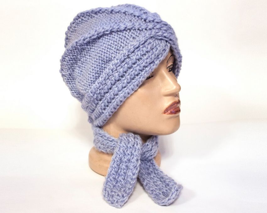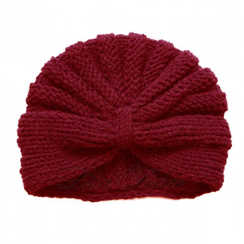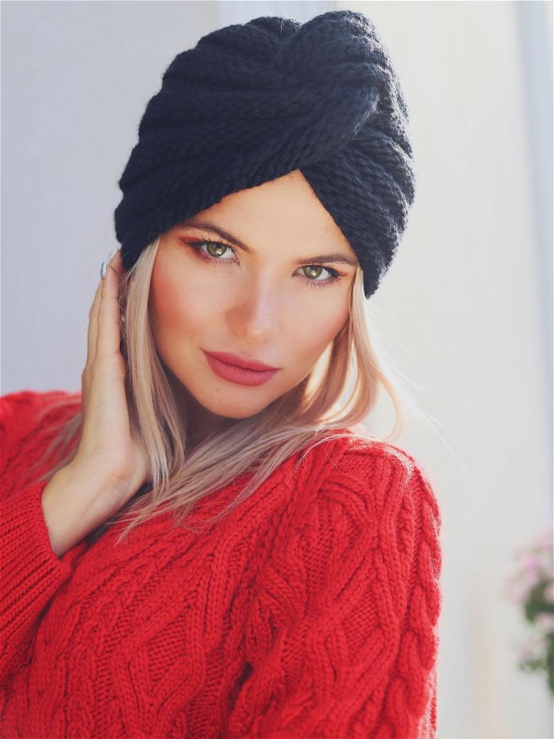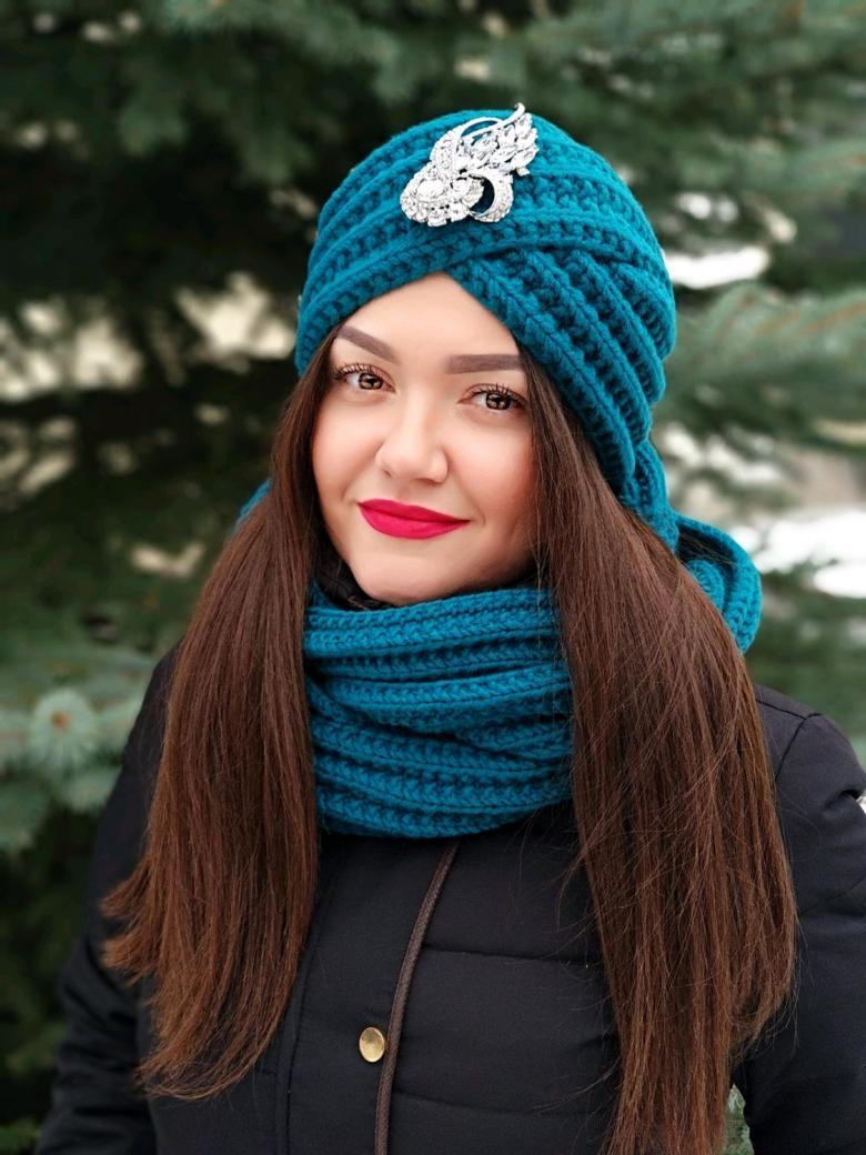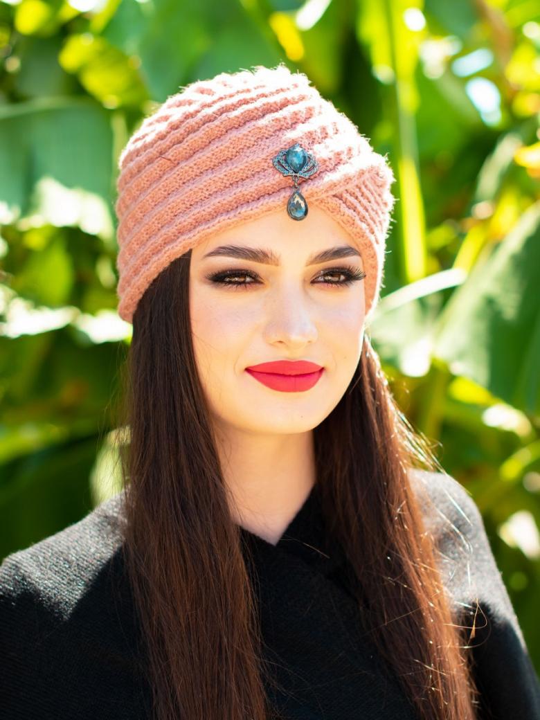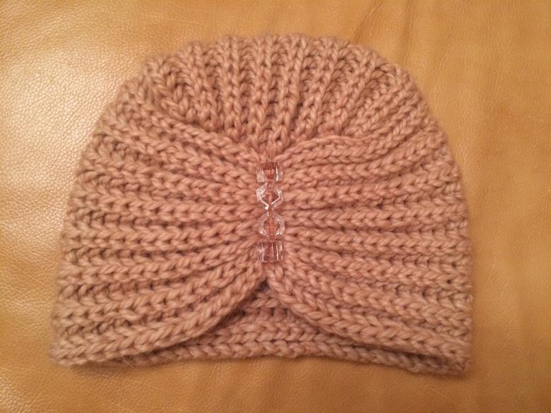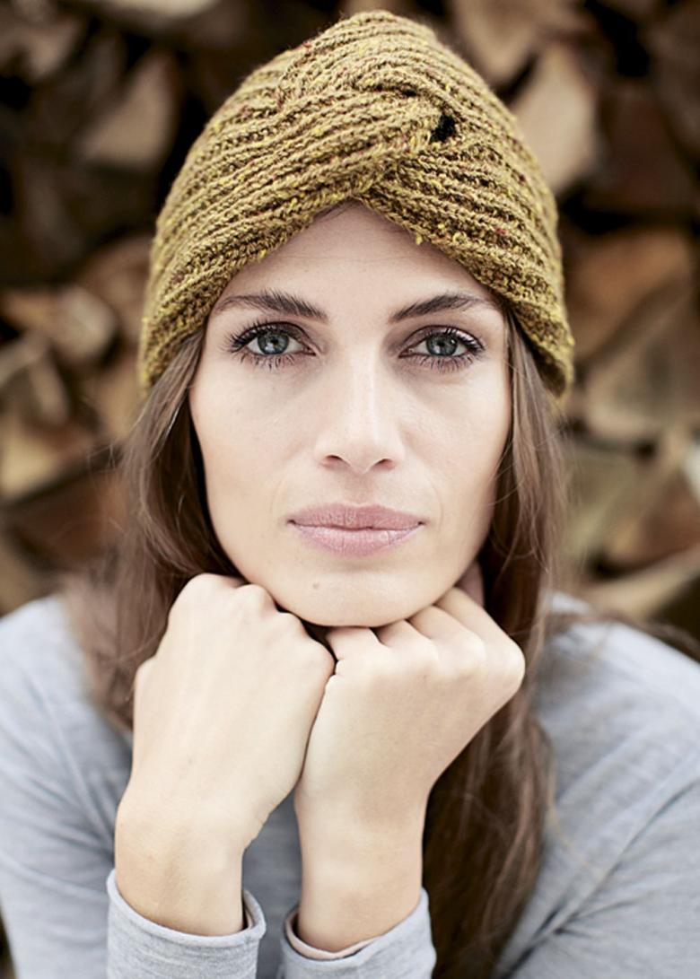L'option la plus simple, adaptée aux tricoteurs inexpérimentés, est le turban, qui est un large bandeau tricoté orné à l'avant d'un élément décoratif qui le tire simultanément vers le haut pour créer un effet de nœud spécifique.