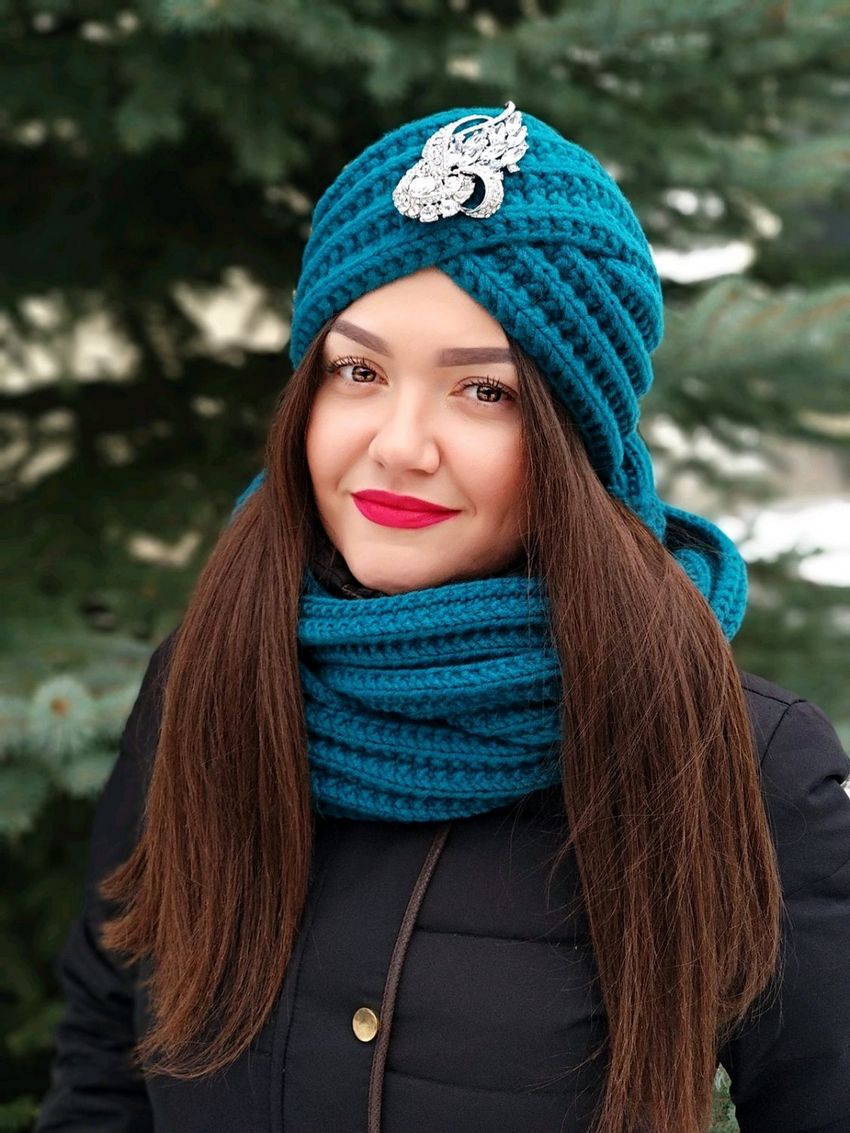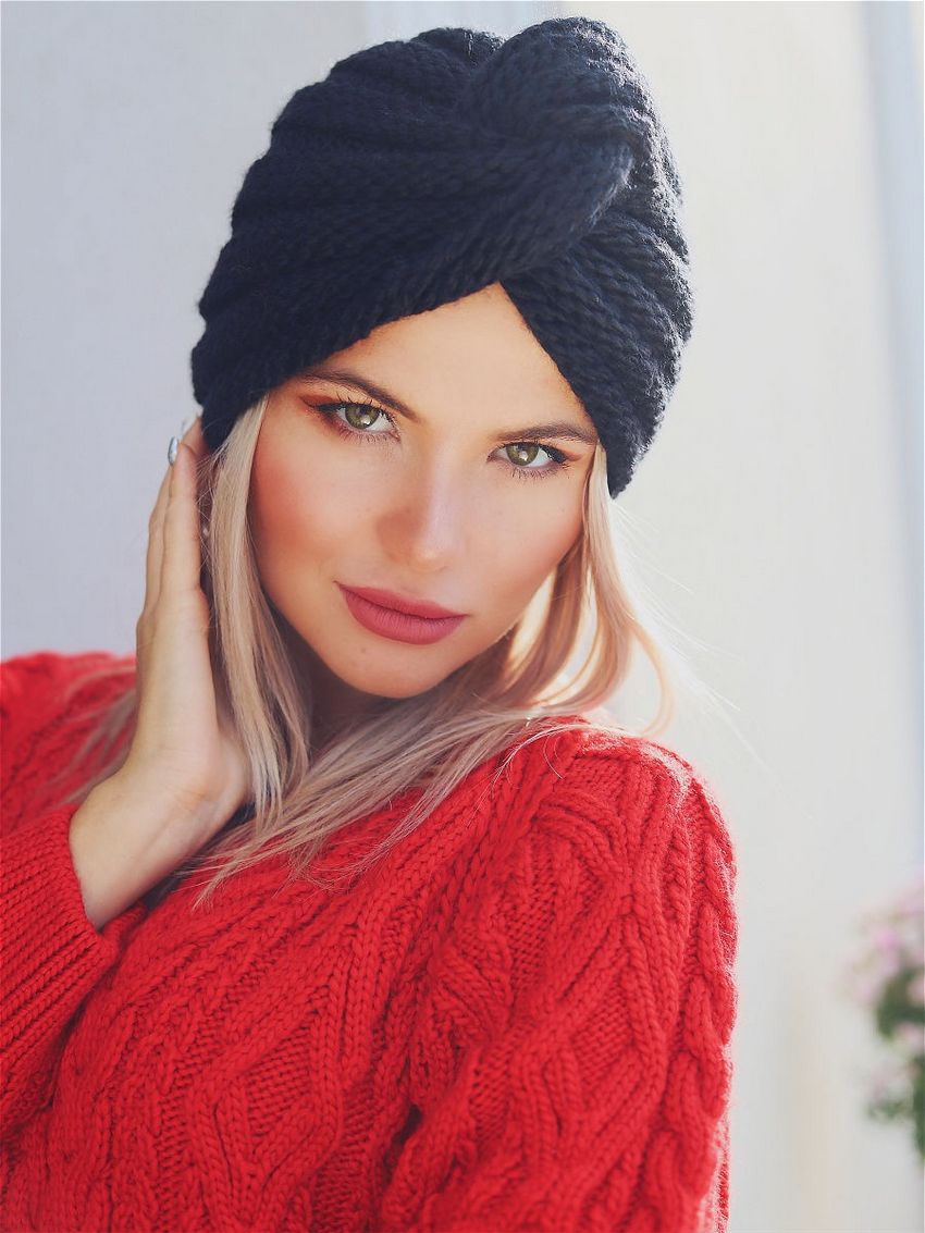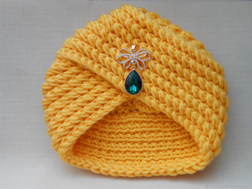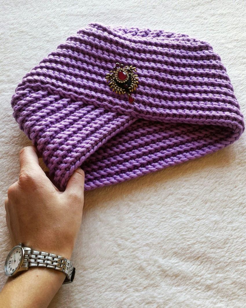 - Si le turban est crocheté, essayez de le rendre plus serré, car il ne se resserrera pas après avoir été étiré. Dans ce cas, il est préférable de choisir un fil à demi-lancé, car la pure laine s'accumule rapidement.