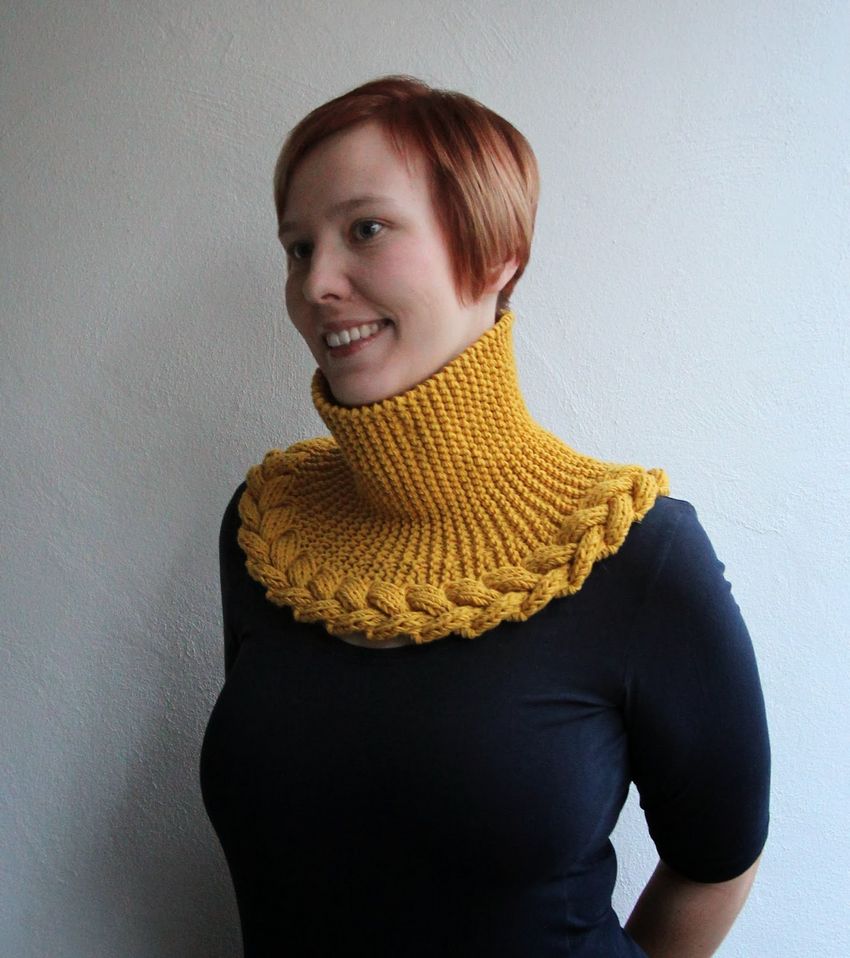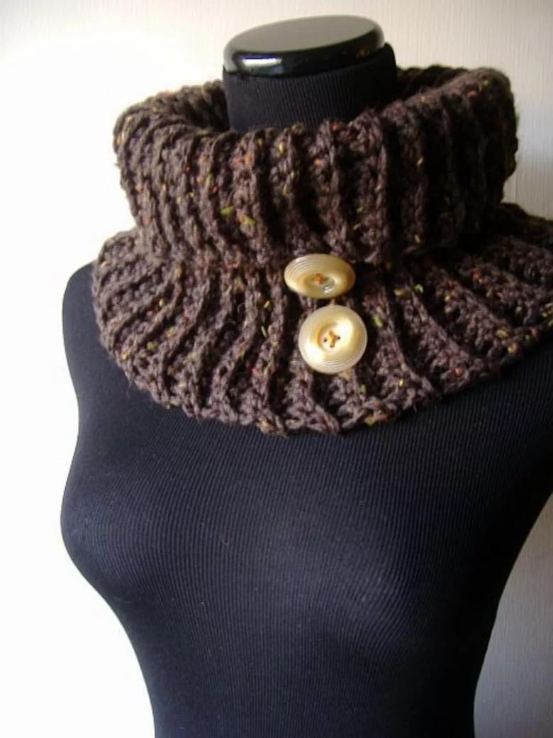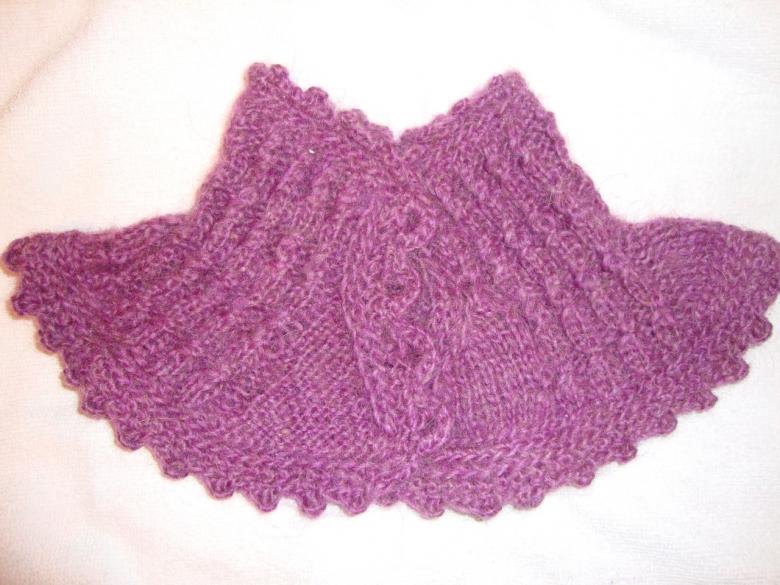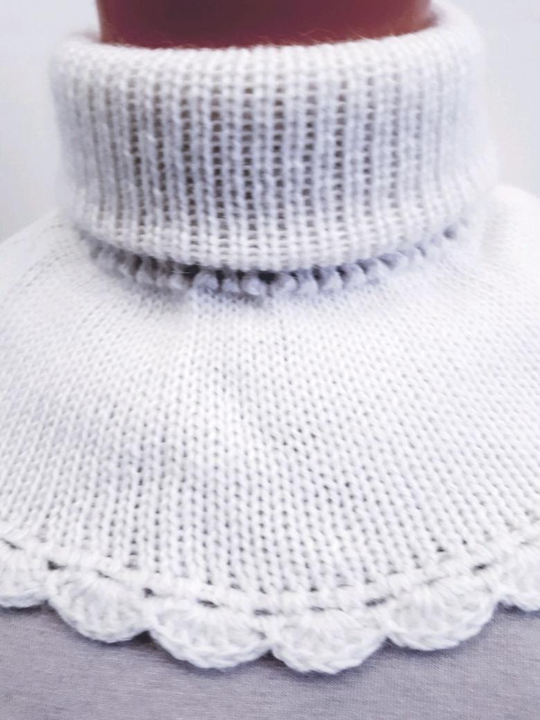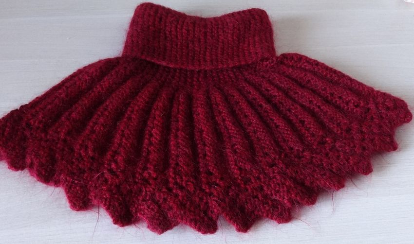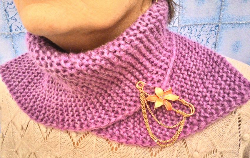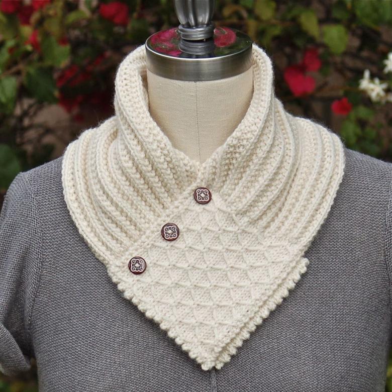 Le châle est une encolure tricotée qui tombe à mi-hauteur de l'encolure. Il est généralement tricoté de manière symétrique, mais il existe d'autres modèles qui permettent de varier le tricotage. En règle générale, un bouton de manchette est tricoté dans un tricot chaud mais doux.