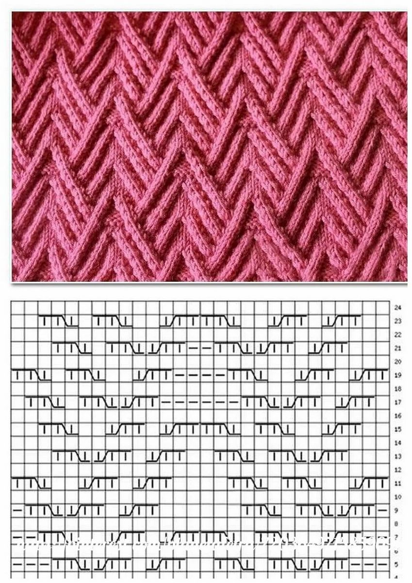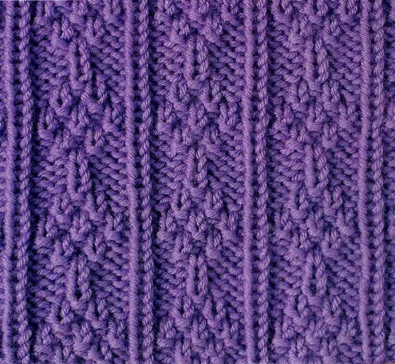 Le tressage est un ornement simple qui convient aux débutants. Le motif du premier point consiste en trois points + deux points d'extrémité. L'alternance est la suivante : trois points unis reliés par un point simple. Le deuxième rang est tricoté avec des mailles arrière respectivement.