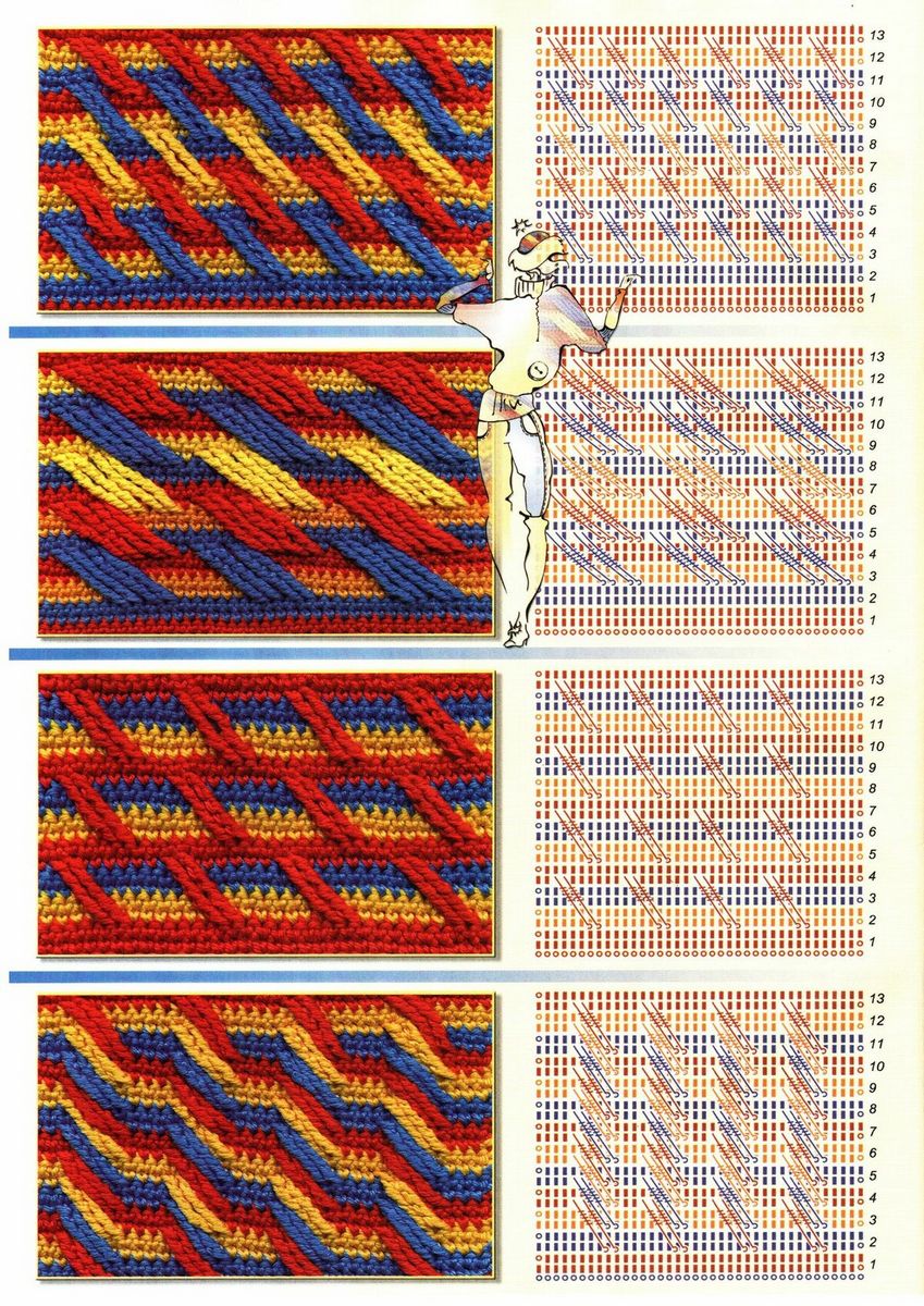 Différents types de motifs fréquents sont le plus souvent tricotés :