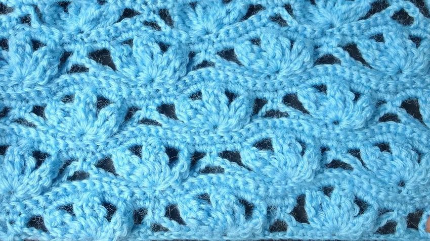 Tricotage moins épais. Facile à réaliser d'un côté, mais exigeant l'attention de l'artiste. S'adapte bien aux pulls, aux plaids et aux chapeaux pour femmes. Des fils de différentes couleurs peuvent être utilisés. En fonction du nombre de points, vous pouvez faire varier la largeur et la hauteur de l'éventail.