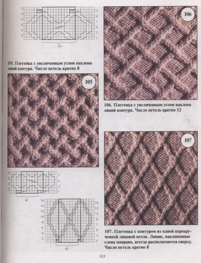 Il s'agit d'un motif basé sur une tresse inclinée qui répète les six points du motif répétitif. Un tel motif est magnifique sur n'importe quel vêtement.