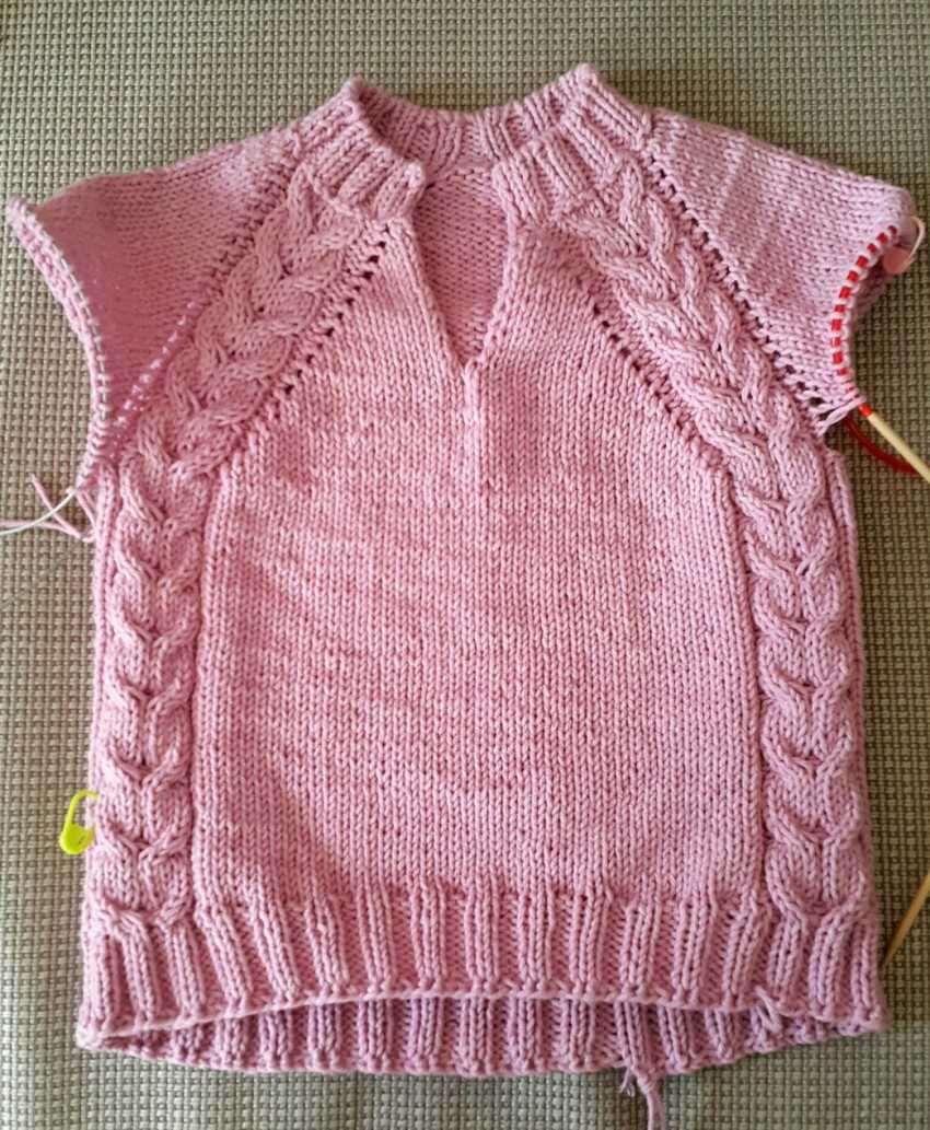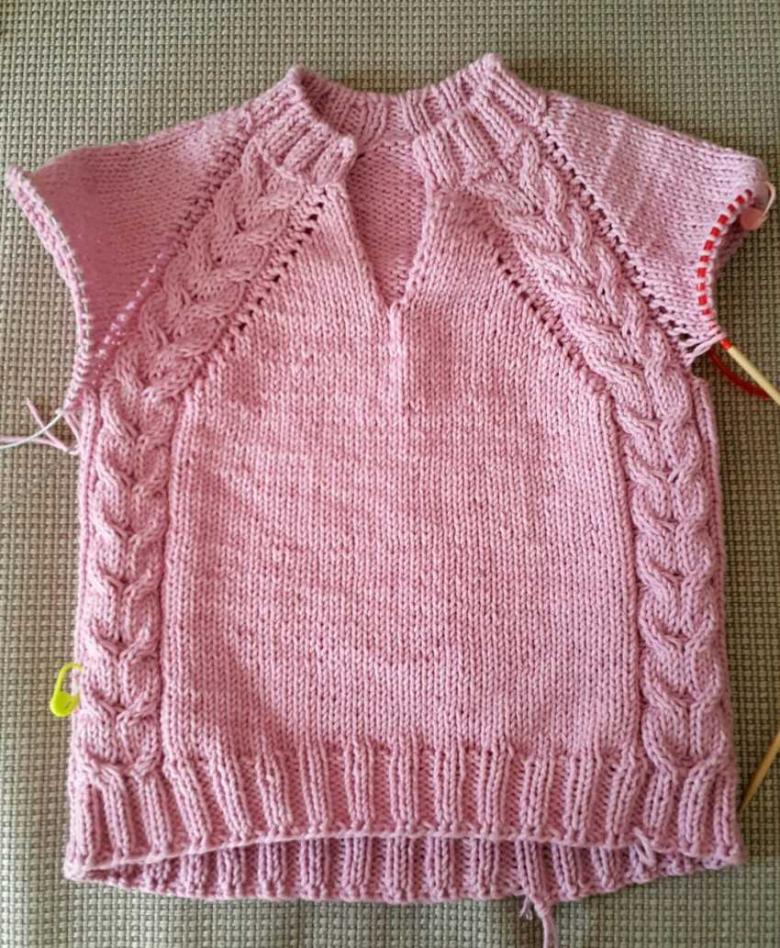 - La troisième pièce est tricotée de manière classique - en ajoutant des boucles de part et d'autre de la ligne raglan.
