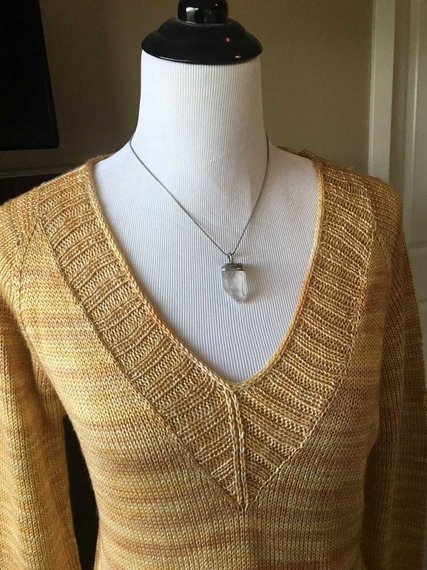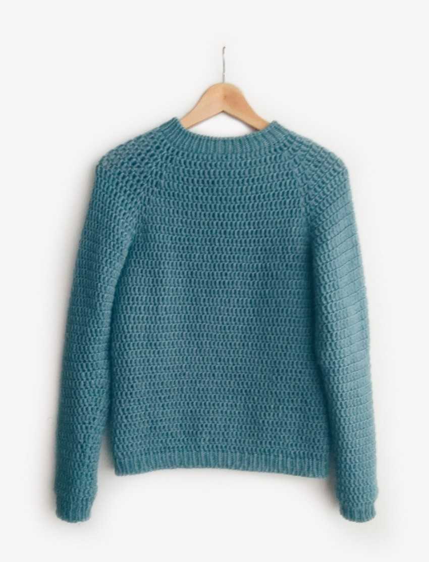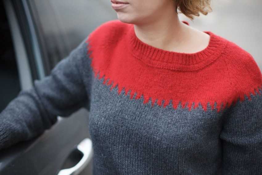 Si vous choisissez de tricoter de l'encolure vers le bas, le point d'épaule raglan vous permettra de ne pas vous soucier des coutures sur le tissu et vous permettra d'ajuster la longueur et la largeur des manches et du torse à tout moment.